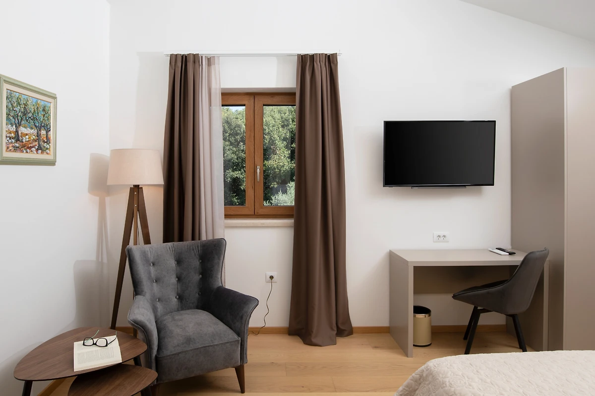 Moderne Annehmlichkeiten umfassen kostenloses WLAN, zwei Fernseher mit Satellitenkanälen und ein Bügeleisen zu Ihrer Bequemlichkeit. Die Villa bietet 4 private überdachte Parkplätze im selben Gebäude. Während Haustiere nicht erlaubt sind, ist die Immobilie ideal für Familien und Paare, die eine ruhige Waldruhe nur 6 km von einem Felsstrand und 10 km von der Stadt Pula und Supermärkten suchen.