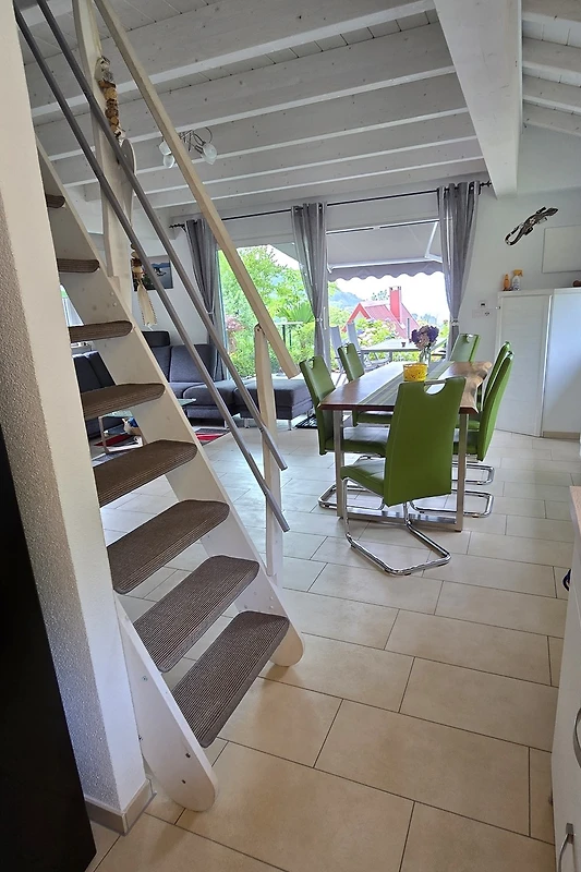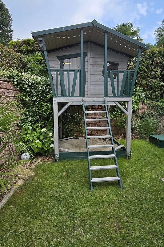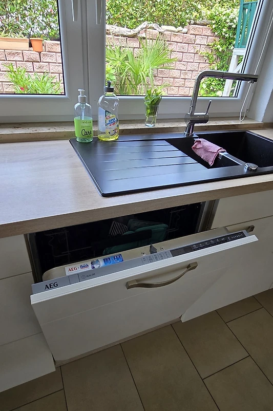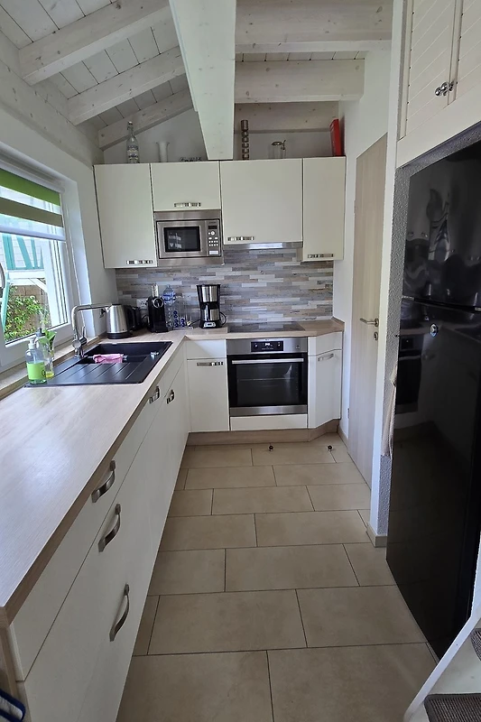 Das Herzstück des Hauses ist der gemütliche Wohnbereich mit Kamin, der gerade an kühleren Abenden für eine wohlige Atmosphäre sorgt. Die voll ausgestattete Küchenzeile inklusive Geschirrspüler, Mikrowelle, Kaffeemaschine und Wasserkocher macht die Selbstversorgung zum Kinderspiel. Ein großer Esstisch lädt zu gemeinsamen Mahlzeiten ein, während der angrenzende Wohnbereich mit bequemen Sofas und einem Fernseher zum Entspannen einlädt.