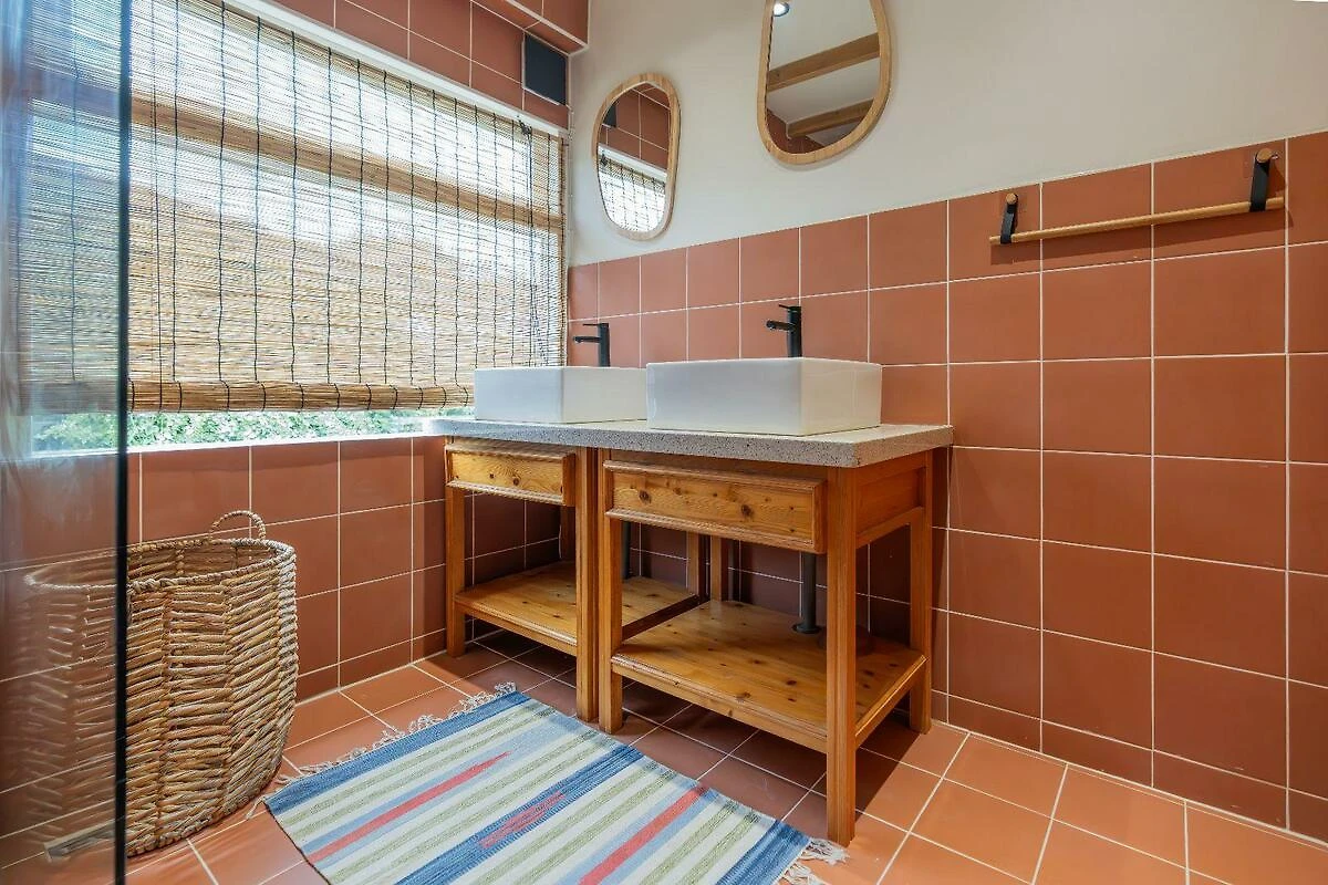 Im Erdgeschoss finden Sie das neue Badezimmer – ganz im Stil des Hauses gestaltet – mit Doppelwaschbecken und großzügiger Dusche. Ein separates WC befindet sich im Flur. Auch eine Waschmaschine ist vorhanden – ideal für einen längeren Aufenthalt.