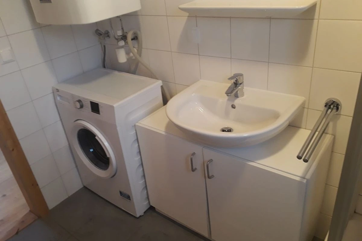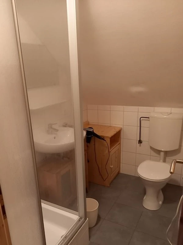 1 Badezimmer mit Dusche, Waschbecken & WC