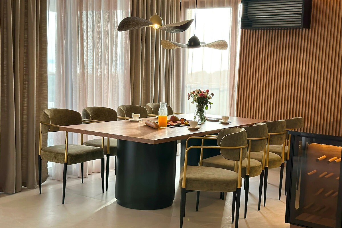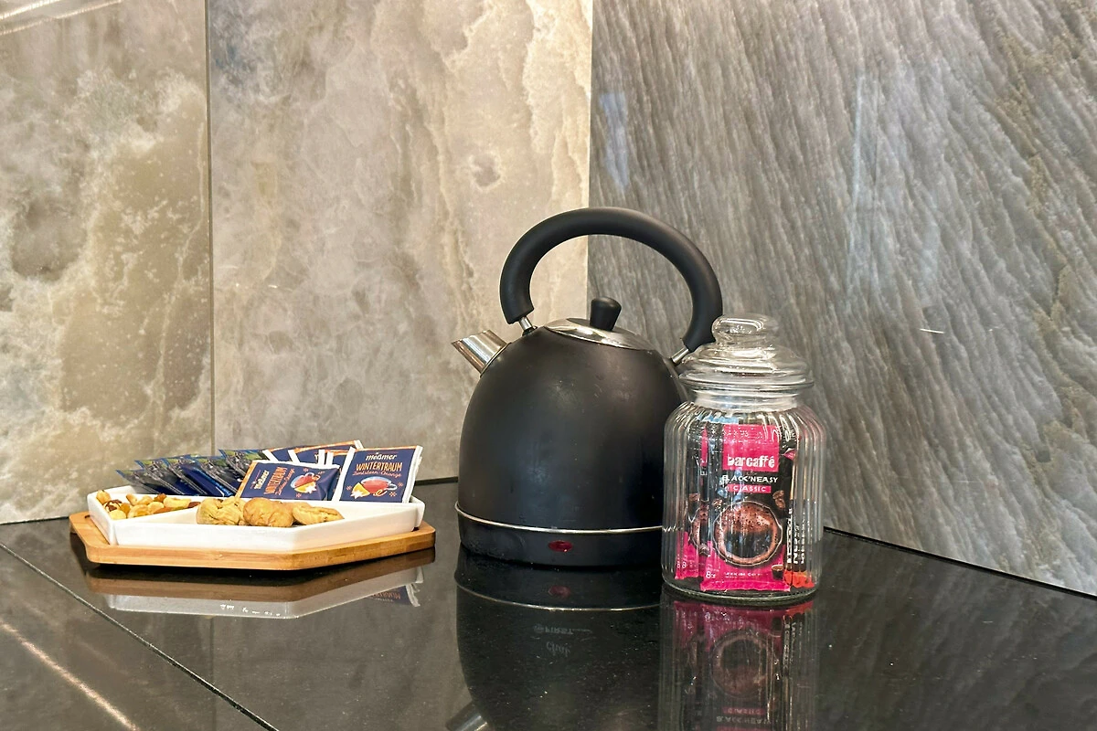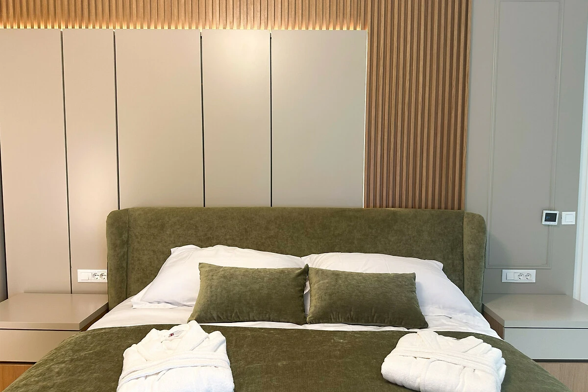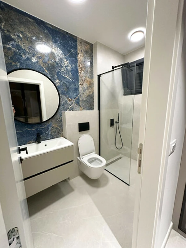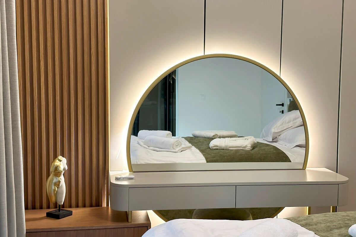 Die Wohnung verfügt über einen atemberaubenden möblierten Balkon mit herrlichem Meerblick, der den perfekten Ort bietet, um Morgenkaffee oder Abendcocktails zu geniessen. Mit drei Schlafzimmern in Kingsize-Grösse und einem Doppelschlafsofa bietet der Raum flexible Schlafmöglichkeiten für alle Gäste. Das Interieur zeichnet sich durch elegante Marmorböden und eine voll ausgestattete amerikanische Küche mit modernen Geräten aus, darunter ein Induktionsherd, Geschirrspüler und Kaffeemaschine.