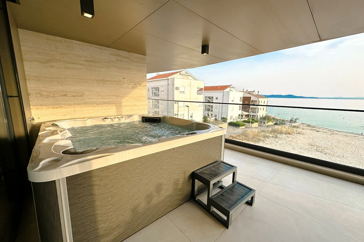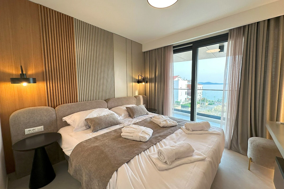 Entdecken Sie die perfekte Meeresunterkunft im Apartment Amber, eine moderne und wunderschön gestaltete Unterkunft direkt am Meer in Zadar. Diese geräumige 3-Zimmer-Wohnung bietet Platz für bis zu 8 Gäste und ist damit die ideale Wahl für Familien, Freundesgruppen und Paare, die einen unvergesslichen kroatischen Urlaub erleben möchten.