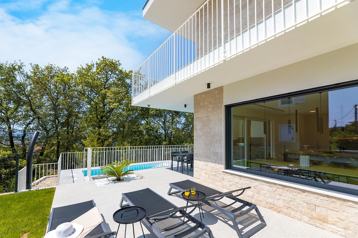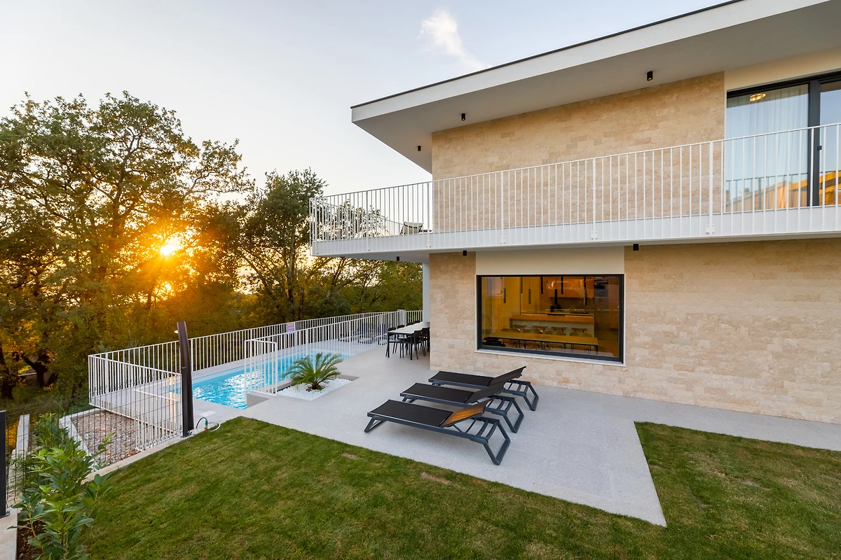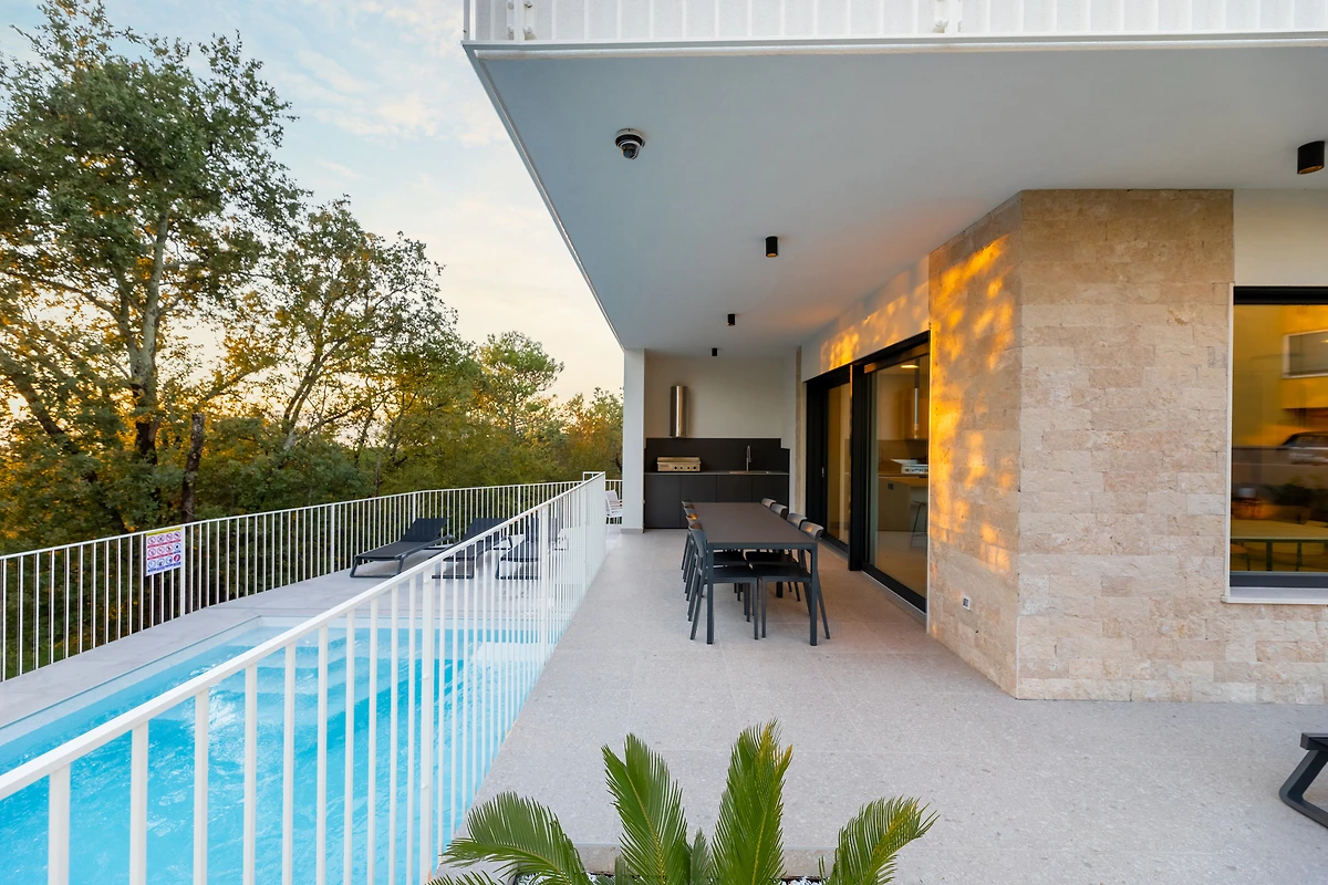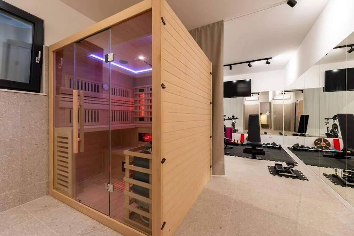 Für ein rundum entspannendes Erlebnis stehen eine private Sauna und ein Fitnessraum sowie eine Konoba für gesellige Abende zur Verfügung. Der gepflegte Außenbereich lädt zum Entspannen und zu gemeinsamen Zusammenkünften ein.