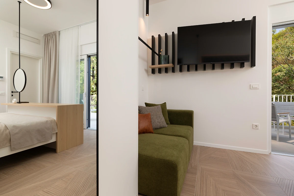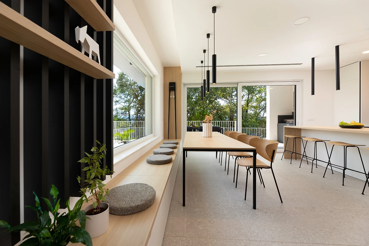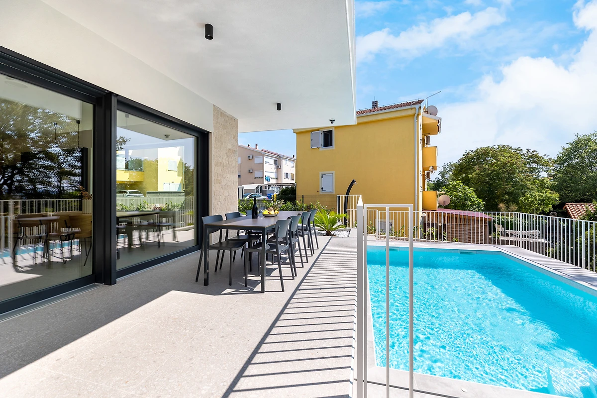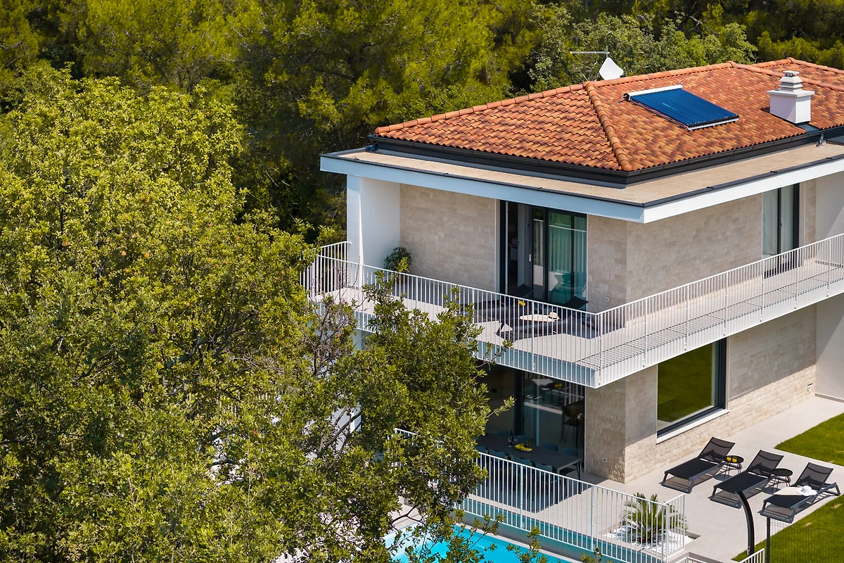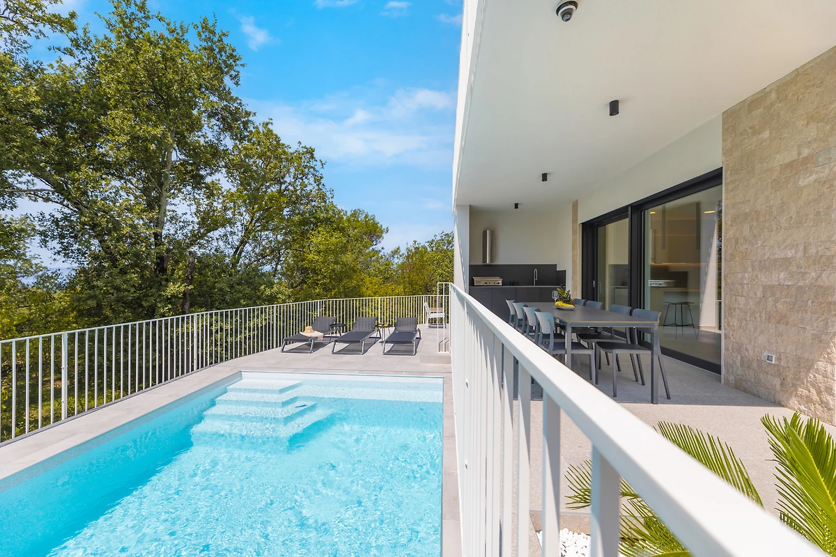 Für ein rundum entspannendes Erlebnis stehen eine private Sauna und ein Fitnessraum sowie eine Konoba für gesellige Abende zur Verfügung. Der gepflegte Außenbereich lädt zum Entspannen und zu gemeinsamen Zusammenkünften ein.