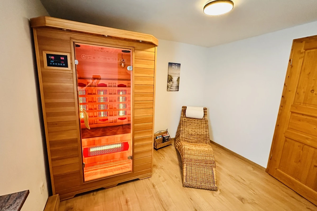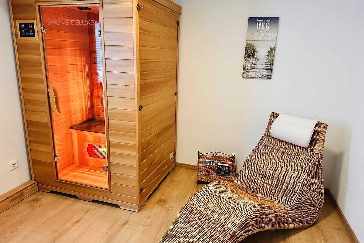Entspanne dich nach einem aktiven Tag in unserem Ruheraum mit Infrarot-Wärmekabine. Bei ruhiger Musik kannst du den Alltag hinter dir lassen und neue Energie tanken.