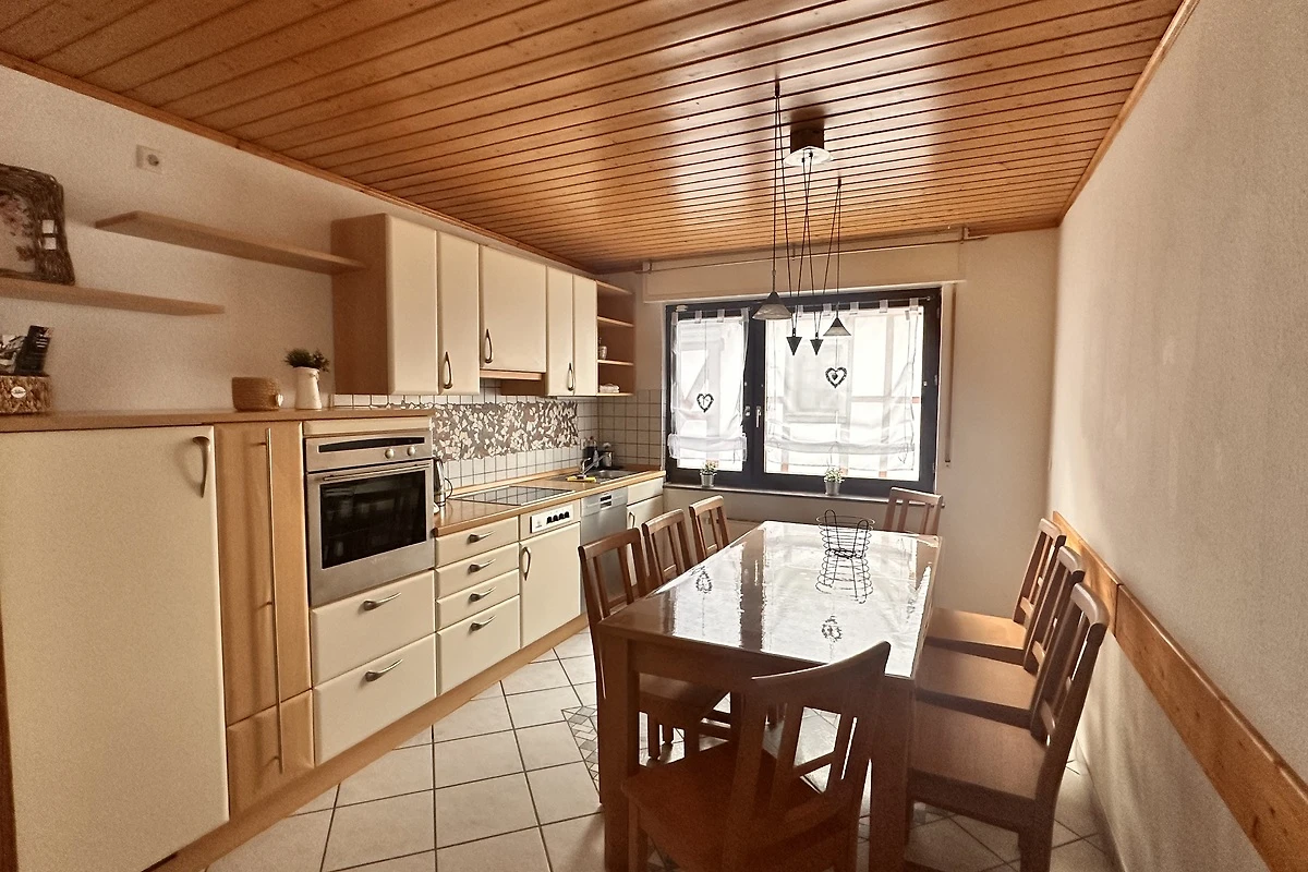 Top ausgestattete Küche mit großem Esstisch für bis zu 8 Personen