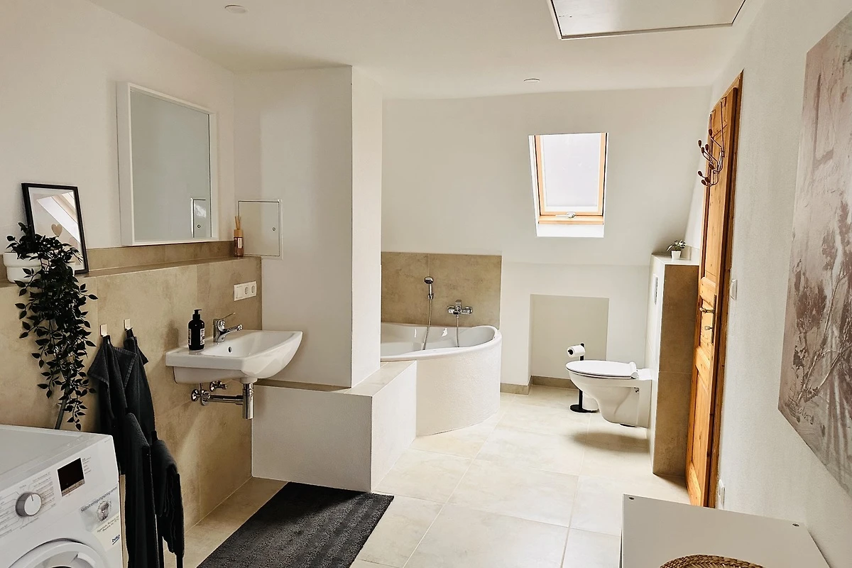 Hochwertiges Badezimmer mit großer Eckbadewanne