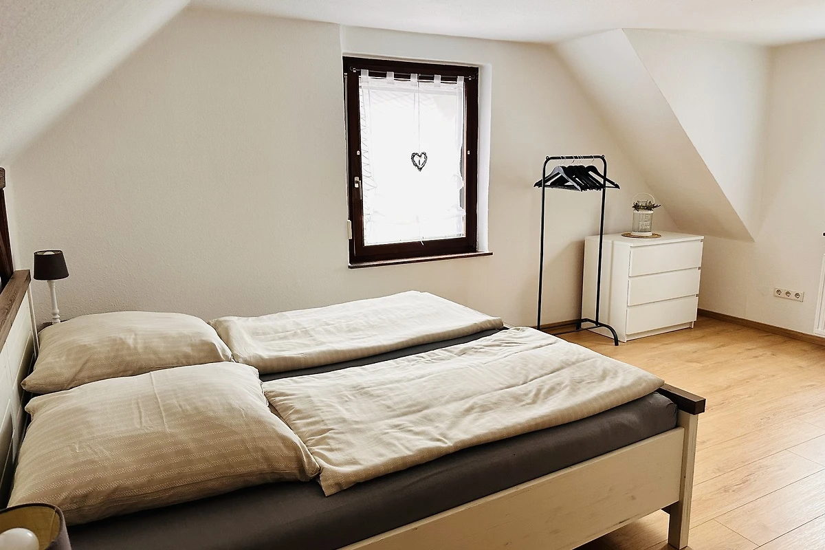 Schlafzimmer mit Doppelbett und hochwertigen Matratzen