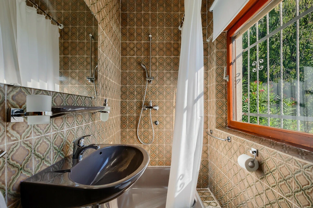 Im Inneren ist die Villa mit modernen Annehmlichkeiten ausgestattet, um einen komfortablen Aufenthalt zu gewährleisten. Die amerikanische Küche ist vollständig mit Geräten ausgestattet, darunter ein Kühlschrank, Gefrierschrank, Ofen, Mikrowelle, Geschirrspüler, Kaffeemaschine und komplettes Küchengeschirr. Fünf Badezimmer bieten ausreichend Platz, mit einer Mischung aus Dusch- und Badewannenoptionen.