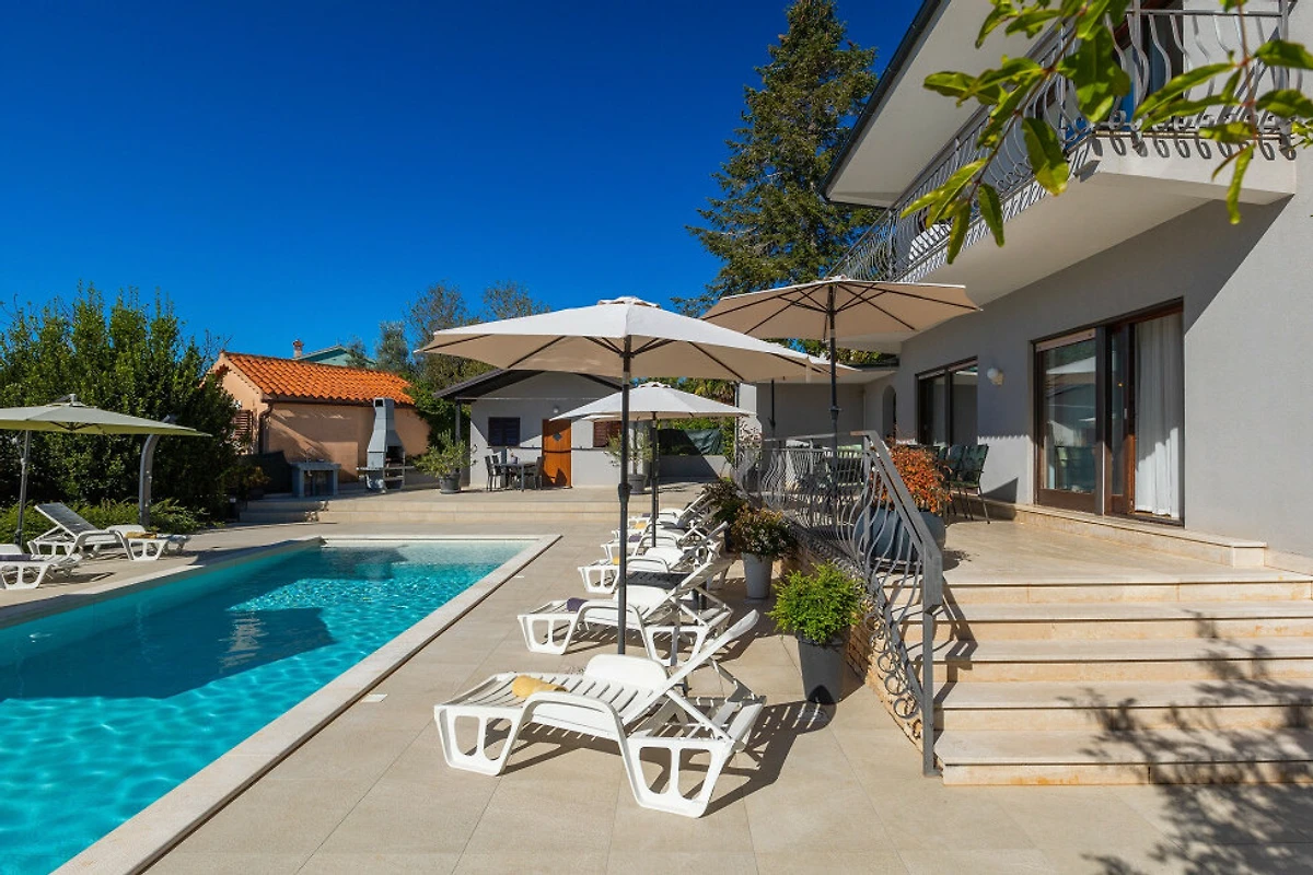 Villa Magnolia bietet einen entzückenden Rückzugsort in der charmanten Stadt Medulin, ideal für Familien und Paare, die einen unvergesslichen kroatischen Urlaub suchen. Diese geräumige Villa bietet bequem Platz für bis zu 11 Gäste und verfügt über 5 gut ausgestattete Schlafzimmer mit einer Mischung aus Doppelbetten und Einzelbetten.