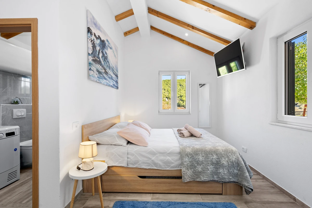 Gelegen in einer ruhigen ländlichen Umgebung in der Nähe von Skradin, befindet sich die Villa nur 950 Meter von einem Sandstrand entfernt und bietet eine beschauliche Umgebung. Obwohl Rauchen nicht erlaubt ist, verspricht die Unterkunft ein komfortables und unvergessliches Urlaubserlebnis für Familien und Paare, die Ruhe und natürliche Schönheit suchen.