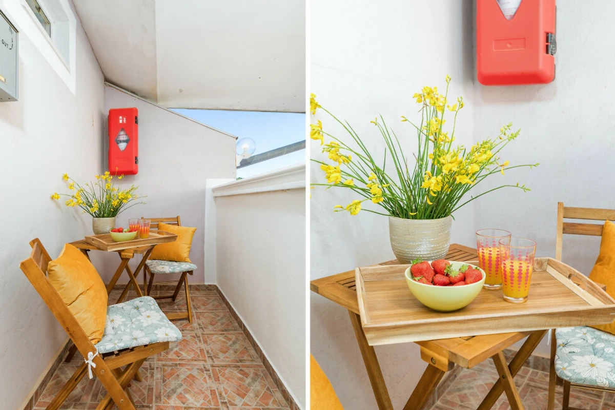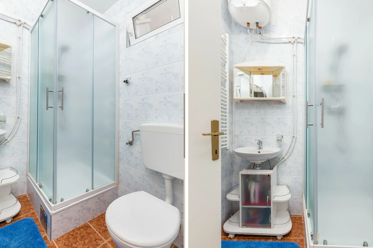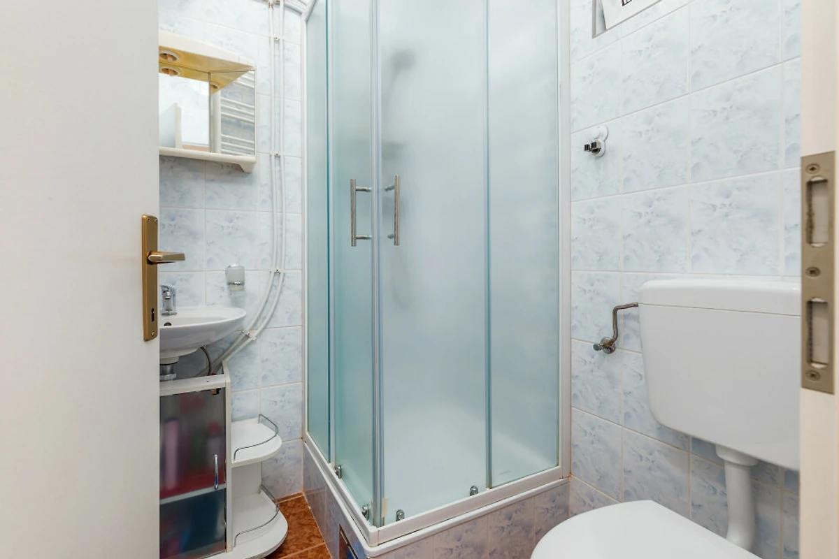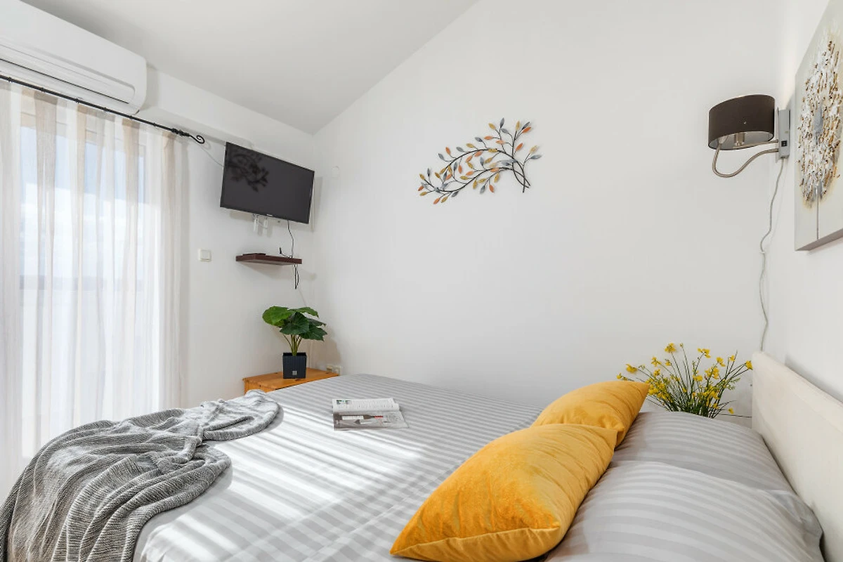 Das Schlafzimmer umfasst ein Doppelbett und zwei Zusatzbetten und bietet damit flexible Schlafmöglichkeiten. Die Ferienwohnung verfügt über ein Badezimmer mit Dusche und sorgt so für Komfort für die Gäste. Die Klimaanlage sorgt für Annehmlichkeiten an warmen Sommertagen, während WLAN Sie verbunden hält.