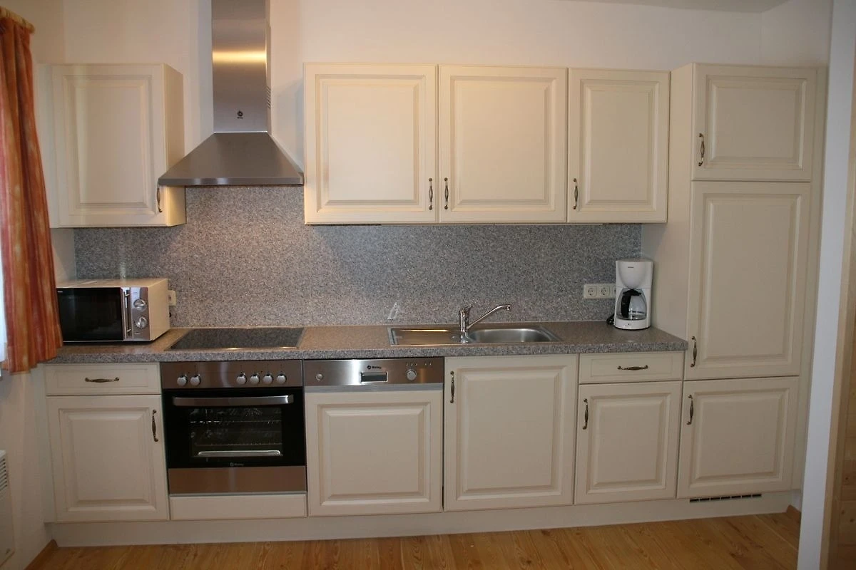 Voll ausgestattete Küche: Backofen, Elektroherd, Geschirrspüler, Kühlschrank mit Gefrierfach, Mikrowelle & Kaffeemaschine