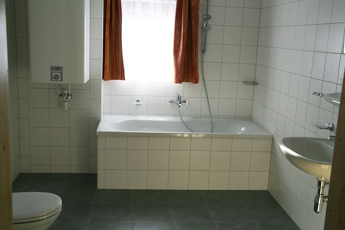 1 Badezimmer mit Badewanne (Duschfunktion), Waschbecken & WC