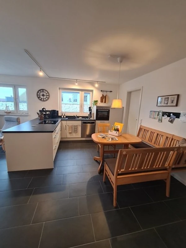 Die Küche ist modern ausgestattet, unter anderem mit einer sehr leisen Spülmaschine und einem Bora-Cerankochfeld. Geschirr, Gläser und Kochgeschirr sind für vier Personen reichlich vorhanden. Im angrenzenden Hauswirtschaftsraum finden Sie einen Wäscheständer, ein Bügelbrett, ein Bügeleisen und einen Staubsauger.