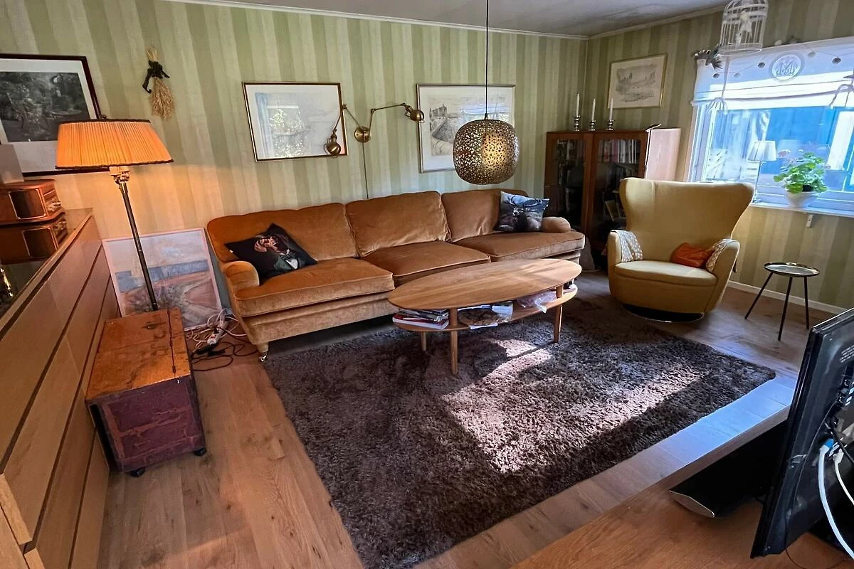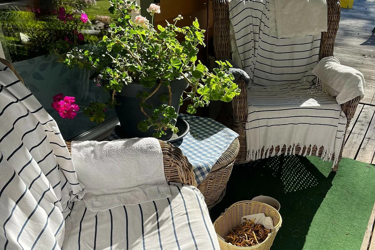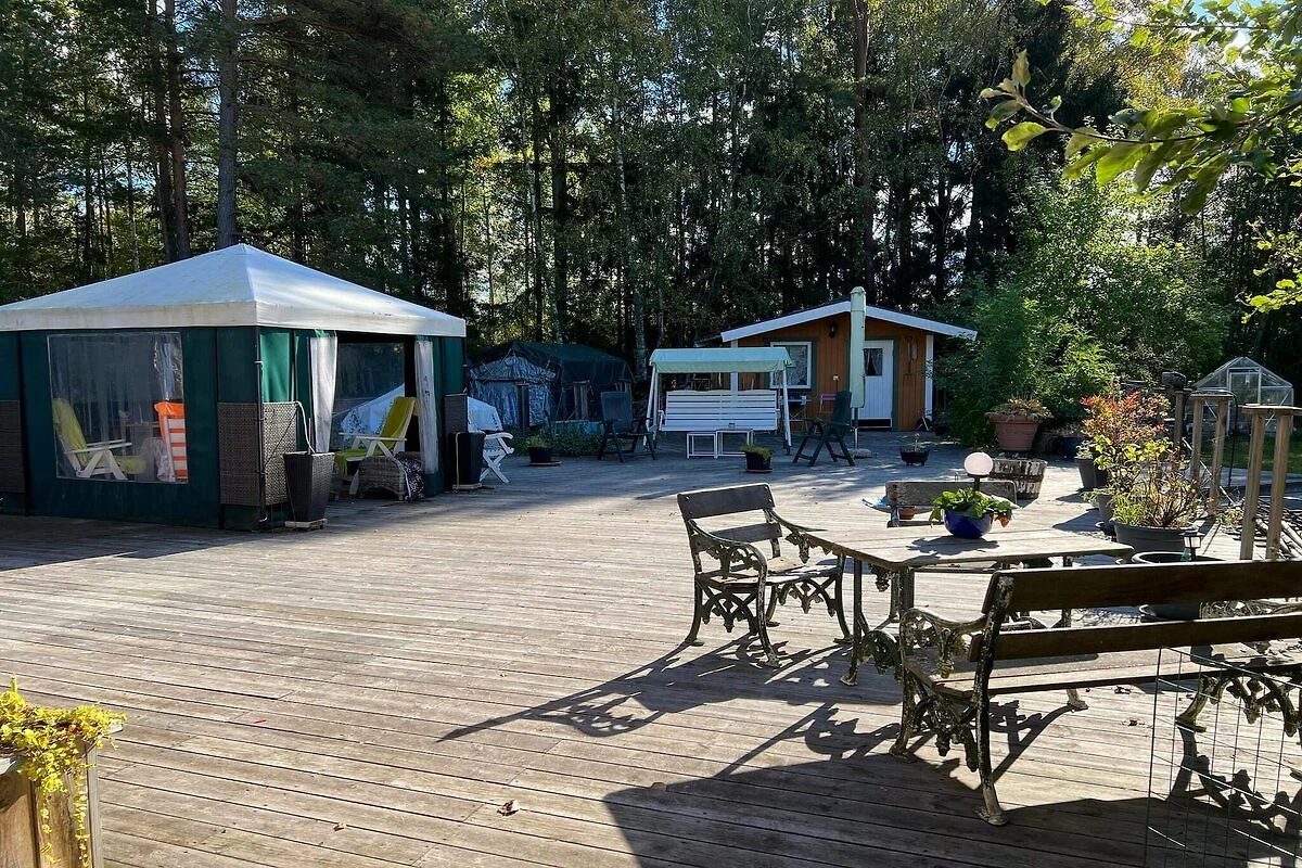 On the beautiful Adelsö, one of the Mälaren islands, you will find this cozy house. In the large house there is a living room and kitchen with the facilities you need for a comfortable holiday. Also a lovely modern bathroom with a steam sauna, washing machine and drying cabinet and a double bedroom with access to the large balcony. The balcony has many cozy seats, a hammock to slowly swing in and a wood-fired hot tub. At one end of the balcony is a shed with space for three people. There is no water and toilet here, only sleeping places. The plot has a wonderful and large lawn for fun activities, the owners have a kubb and croquet that you are welcome to borrow. Two hundred meters from the house there is a rock swimming pool and if you want a sandy beach there is a family swimming pool at Hovegården which is four km from the house. Adelsö has a lot to discover, from Hovgården there is a boat to Birka, with interesting Viking finds. If you like hiking, there are many nice hiking tours on the island. There are old burial mounds and rune stones on the island. You can get to the island by free car ferry that runs a shuttle service during the summer months. There is a small grocery store at the ferry, if you want a larger store there is one in Ekerö center, where there is also a gas station and a system company. There is a bus to Stockholm, so you don't need to take the car, but there is also a large shuttle parking lot at Ekerö center, from there you can take a boat into central Stockholm, a nice boat trip.