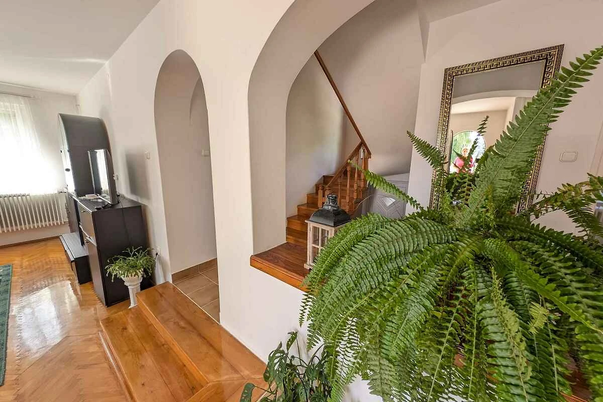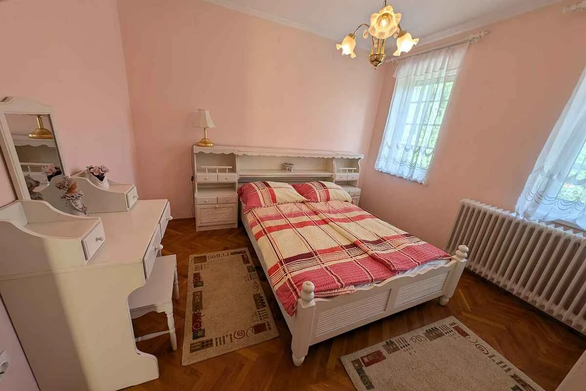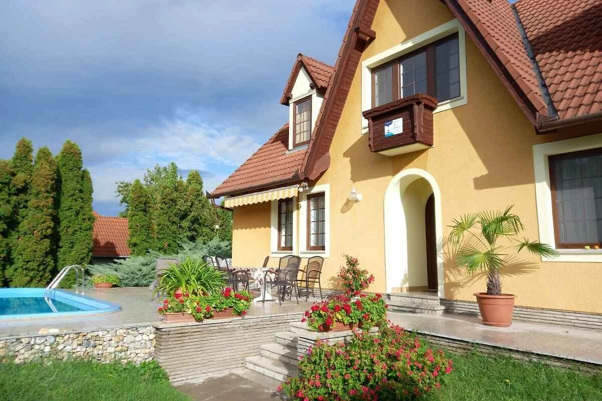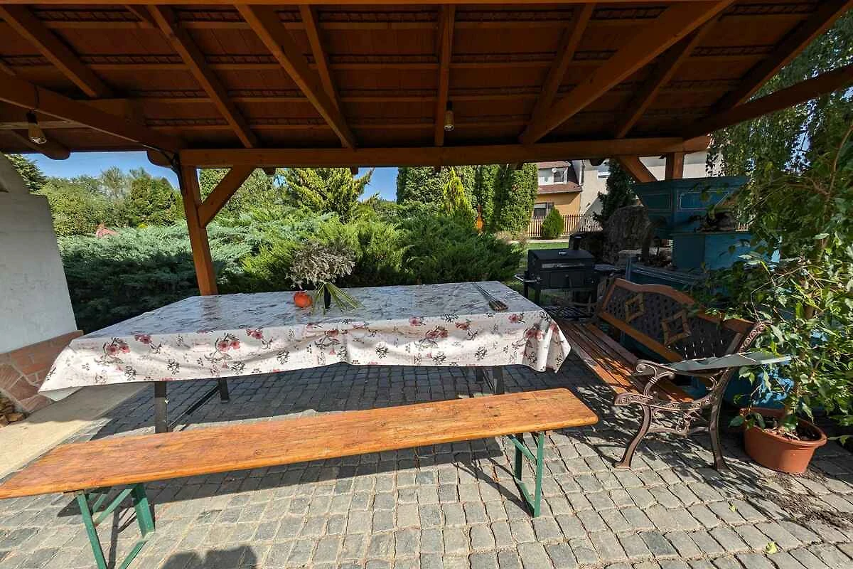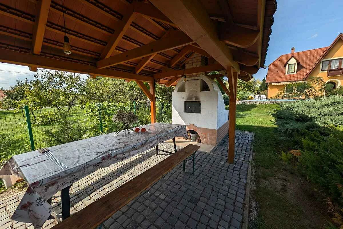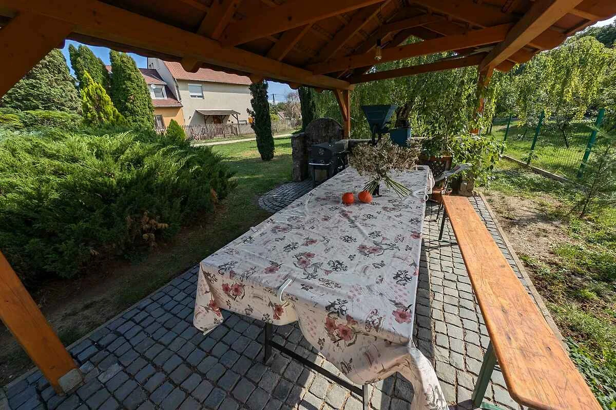 Gyenesdiás. Das Ferienhaus befindet sich auf einem 1000 qm grossen, geschlossenen Gartengrundstück mit Wiese, Blumen, Sträuchern und Bäumen, von einem Zaun begrenzt. Der Vermieter wohnt in einem separaten Gebäude auf dem Grundstück. Die Zufahrt erfolgt über eine Nebenstrasse (asphaltiert). Parkplatz (für 3 Pkws) auf dem Grundstück.