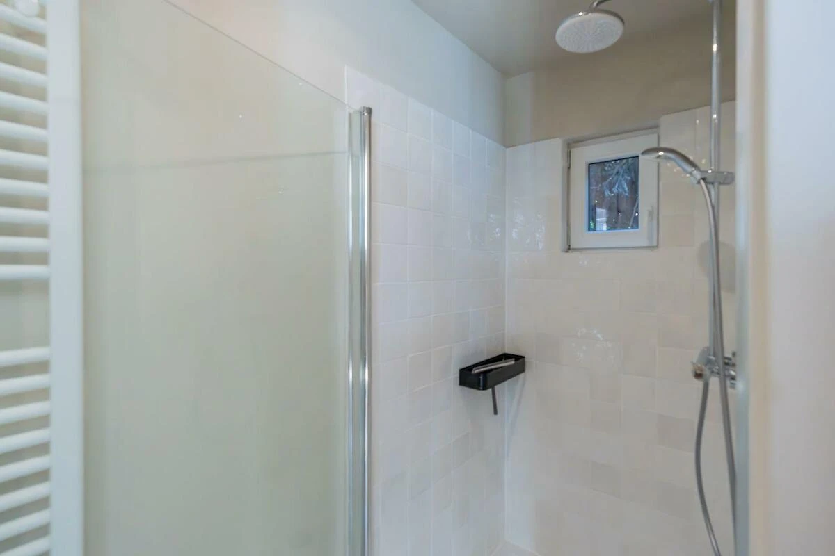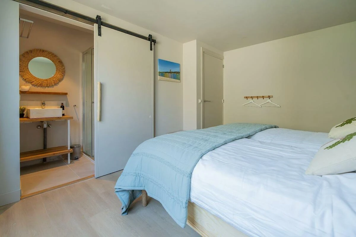 Diese Unterkunft bietet höchsten Komfort und Privatsphäre mit zwei großzügigen Schlafzimmern, jeweils mit einem modernen Bad en Suite. Die stilvoll eingerichteten Schlafzimmer sind wie folgt ausgestattet: eines mit einem komfortablen Doppelbett (180x200) und das andere mit zwei luxuriösen Boxspring-Einzelbetten (90x200). Beide Bäder überzeugen mit einer modernen, klaren Gestaltung, einer begehbaren Dusche und einem Waschbecken. Besonders praktisch: Eines der Schlafzimmer verfügt über eine separate Toilette, und im Flur steht ein zusätzliches Gäste-WC zur Verfügung.