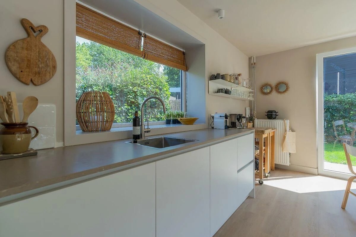 Die neue, offene Küche ist komplett ausgestattet. Ob Sie schnell frühstücken oder ausführlich kochen möchten, alles ist vorhanden – von modernen Geräten bis hin zu einer praktischen Anordnung.