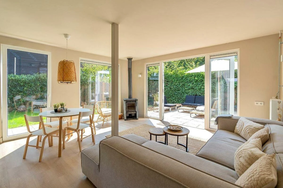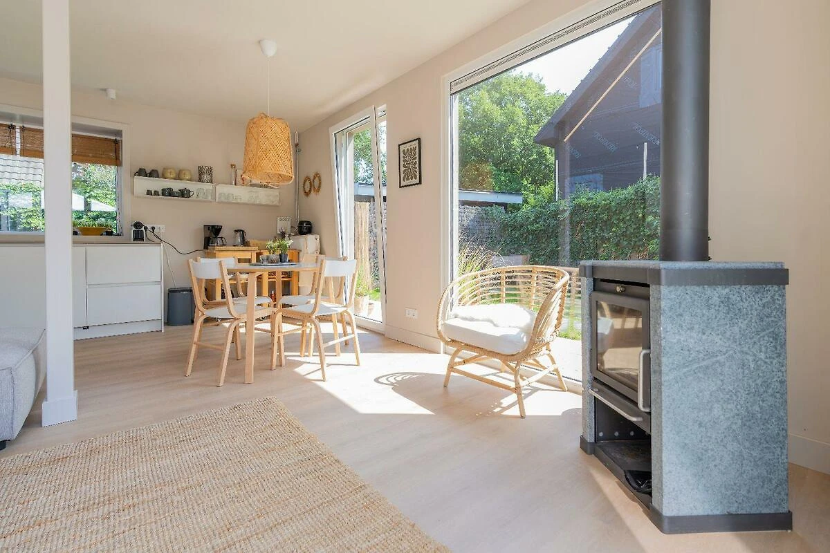 Draußen erwartet Sie ein gemütlich eingerichteter, vollständig umzäunter Garten mit einer schönen Lounge-Ecke. Beginnen Sie den Tag mit einer frischen Tasse Kaffee in der Morgensonne, entspannen Sie sich nachmittags mit einem guten Buch und lassen Sie den Tag mit einem leckeren Glas Wein ausklingen. Dank der ruhigen und geschützten Lage können Sie hier Ihren eigenen, privaten Außenbereich in vollen Zügen genießen. Außerdem gibt es einen geräumigen Schuppen, in dem Sie Ihre Fahrräder während Ihres Aufenthalts sicher abstellen können.