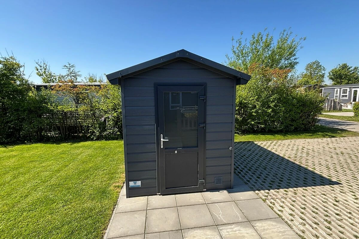 Im nebenstehenden Gartenhaus können Sie Ihre Fahrräder unterstellen und E-Bikes aufladen, ebenso wie die Strandutensilien unterstellen.