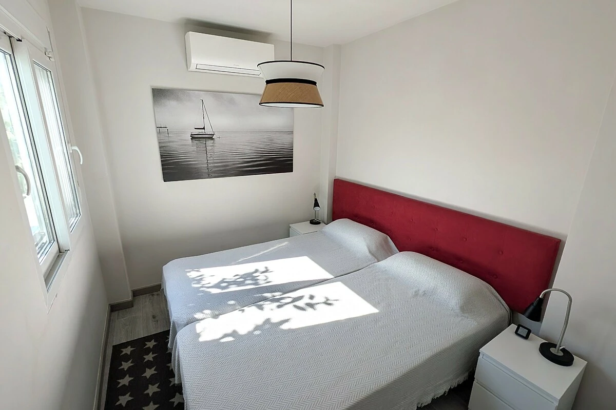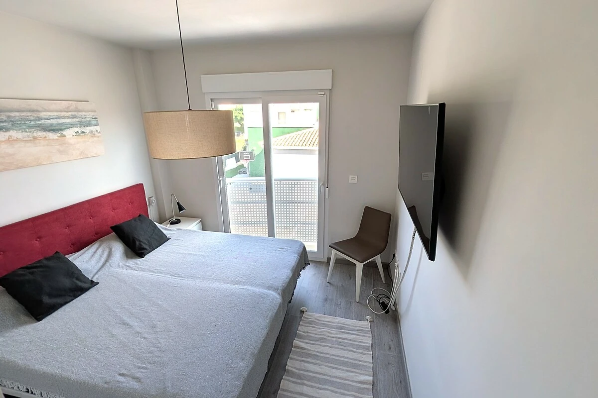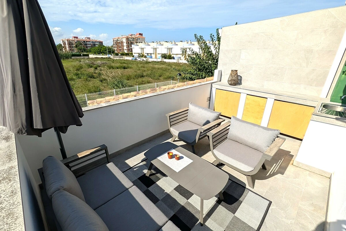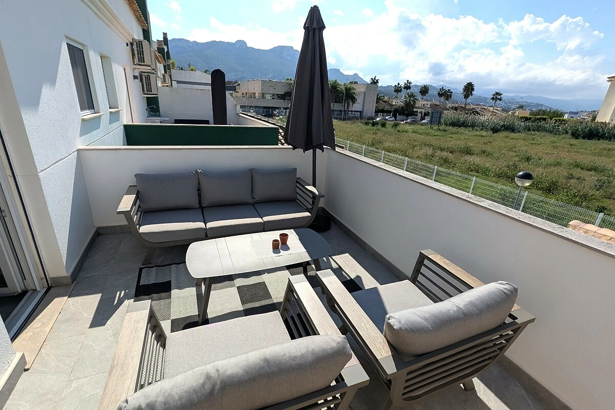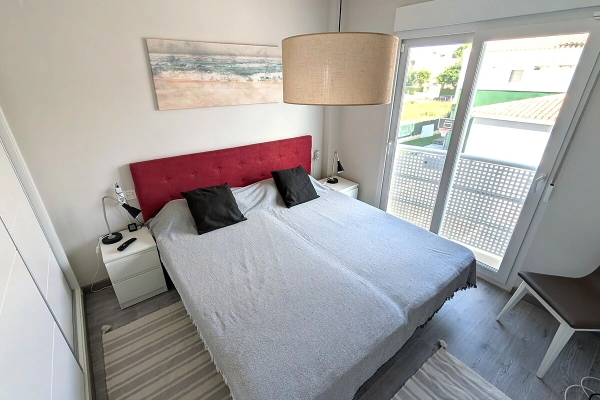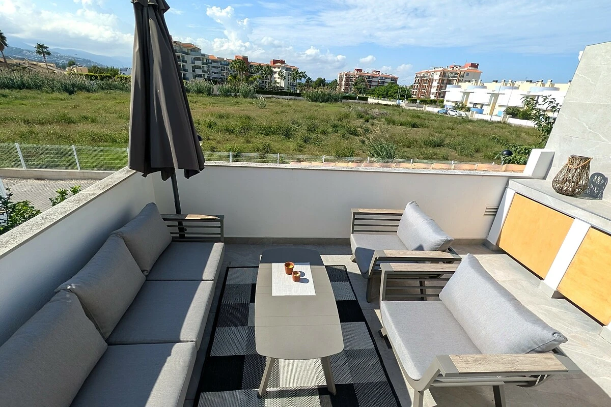 Das in 2020 fertiggestellte, gepflegte Ferienhaus verfügt über zwei Schlafzimmer mit jeweils zwei Betten (jedes Bett ist 200 x 90 cm groß). Die beiden Badezimmer (jeweils eines im EG und OG) verfügen neben einem Waschbecken und einer Toilette jeweils über eine Dusche. Die Dusche im OG ist besonders geräumig. Das Haus ist hell und modern eingerichtet. Es liegt in Strandnähe (Playa Deveses, dem schönsten Strand von Denia) und bietet somit einen perfekten Ausgangspunkt für erholsame Ferien am Meer. Die Zimmer sind geschmackvoll eingerichtet und bieten ausreichend Platz für 4 Personen. Die offene Küche ist komplett ausgestattet und lädt zum gemeinsamen Kochen ein. Im Außenbereich befindet sich eine nach Osten ausgerichtete Terrasse mit Pergola im Erdgeschoss und eine weitere nach Westen ausgerichtete Terrasse im Obergeschoss. Die Ost-Terrasse ist ein idealer Ort für das morgentliche Frühstück. Auf der West-Terrasse haben Sie einen wunderbaren Blick auf die Serra de Segària. Am Abend können Sie dort in einer gemütlichen Lounge den Sonnenuntergang genießen. Das Ferienhaus verspricht einen entspannten und komfortablen Aufenthalt in einer traumhaften Umgebung.