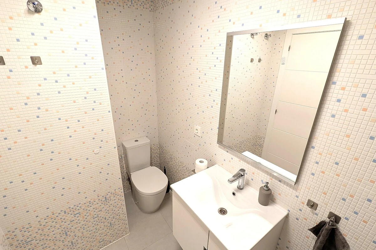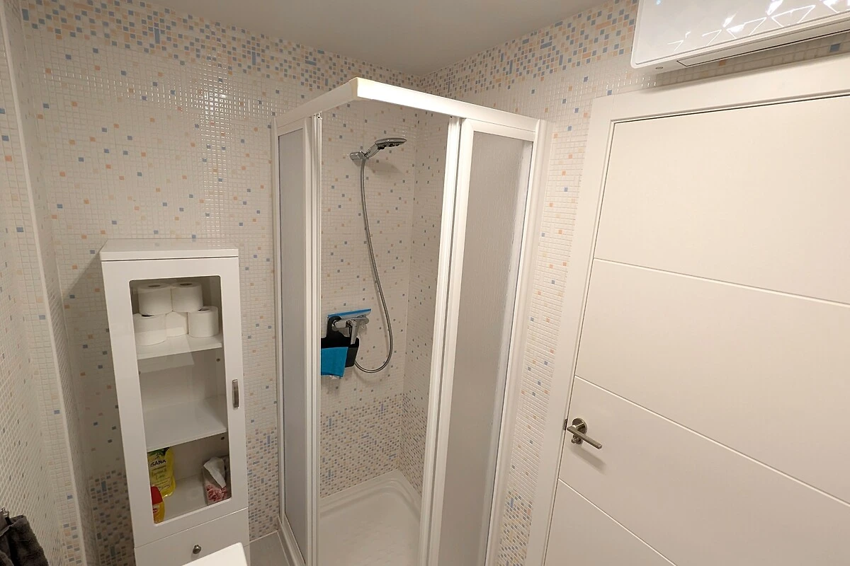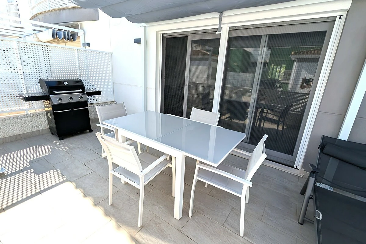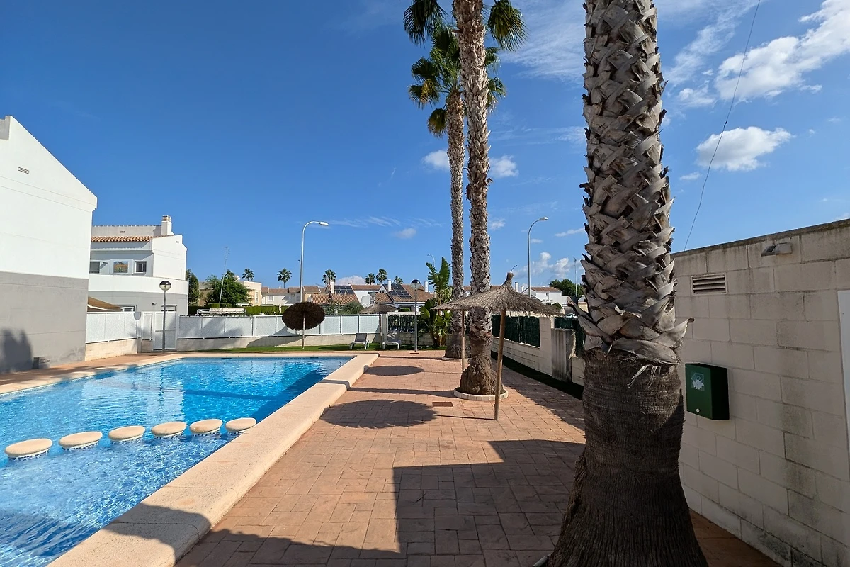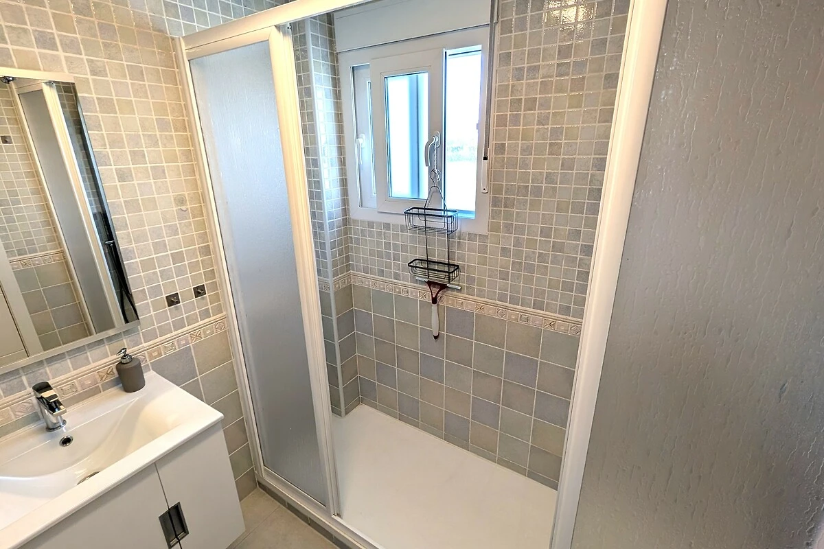 Die Ausstattung des Hauses ist modern und neuwertig: Fliesenböden, weiße, doppelt verglaste neue Fenster, Fliegengitter (Moskitoschutz) an allen Fenstern, Rollläden, Sicherheitseingangstür und Marmortreppe nach oben, Einbauschränke, moderne Klimaanlagen warm/kalt in allen Räumen, zwei Terrassen, zwei Smart TV, großer Gemeinschaftspool, Einbauküche mit Waschmaschine, Spülmaschine, Kühl-Gefrierkombination, Induktionskochfeld, Elektrobackofen, Dunstabzugshaube, Kaffeemaschine (Delonghi + Filter), Toaster, Internet.