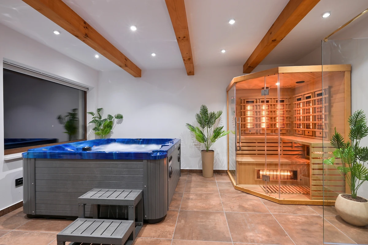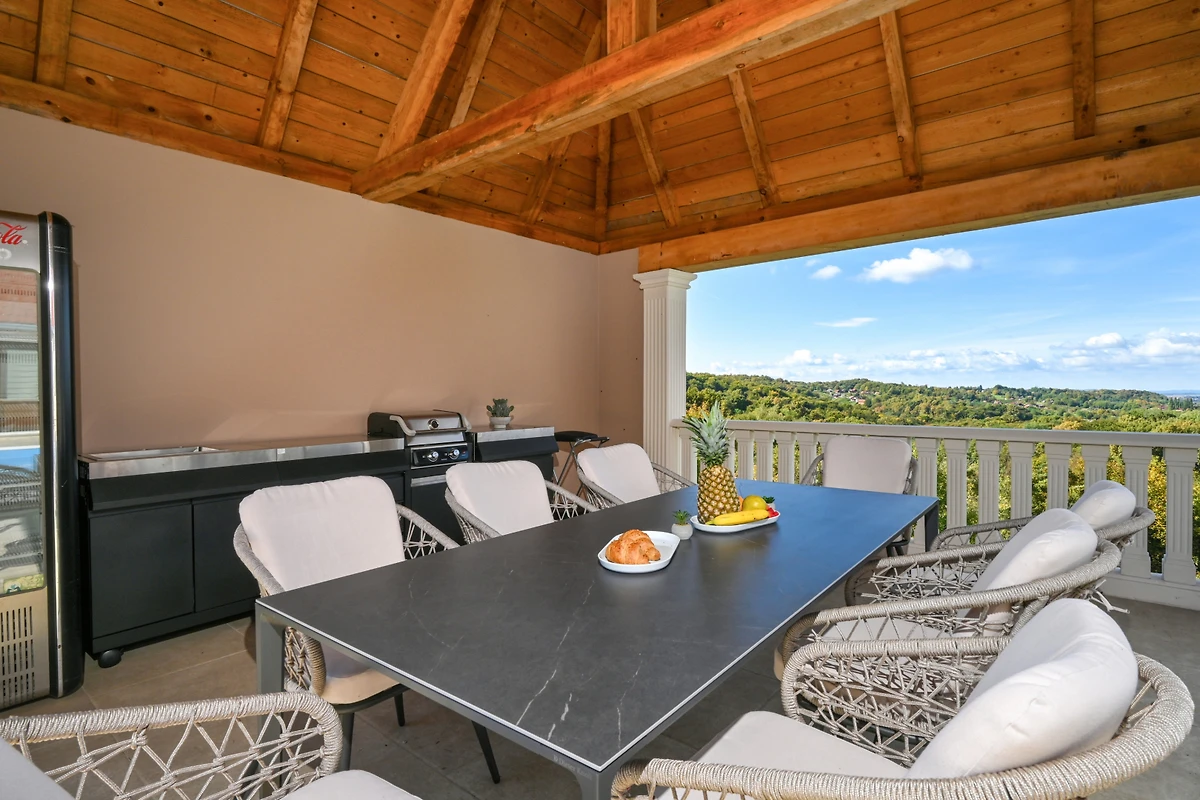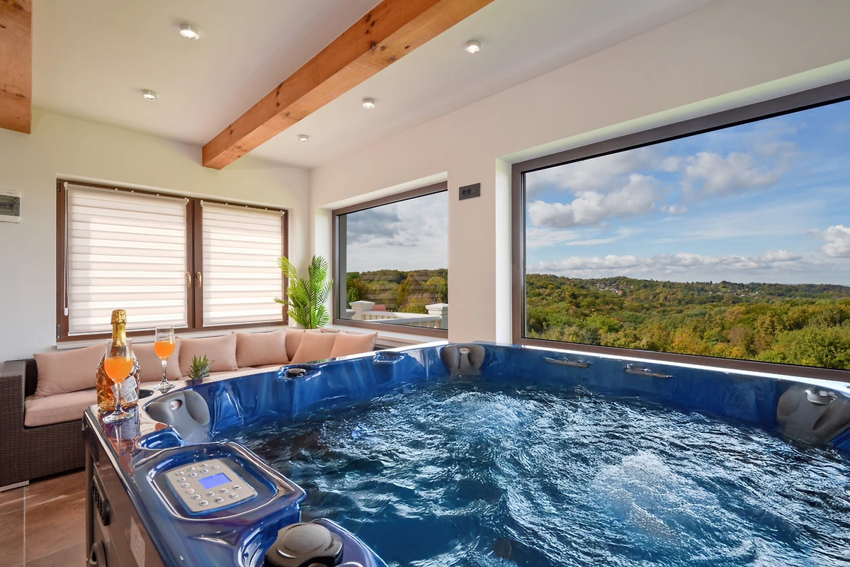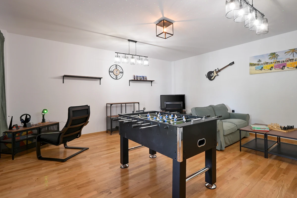 Zusätzliche Ausstattungsmerkmale umfassen 4 überdachte private Parkplätze, eine Sauna und einen Kinderbereich. Gelegen in der ruhigen ländlichen Umgebung von Beretinec, befindet sich die Villa nur 6 Kilometer von Varaždin entfernt und bietet einen friedlichen Rückzugsort mit einfachem Zugang zu lokalen Einrichtungen. Bitte beachten Sie, dass Haustiere nicht erlaubt sind und die Immobilie nicht für Jugendgruppen geeignet ist.