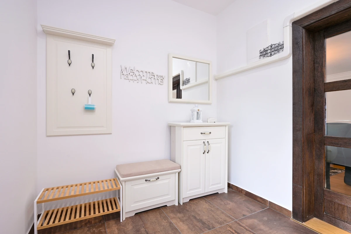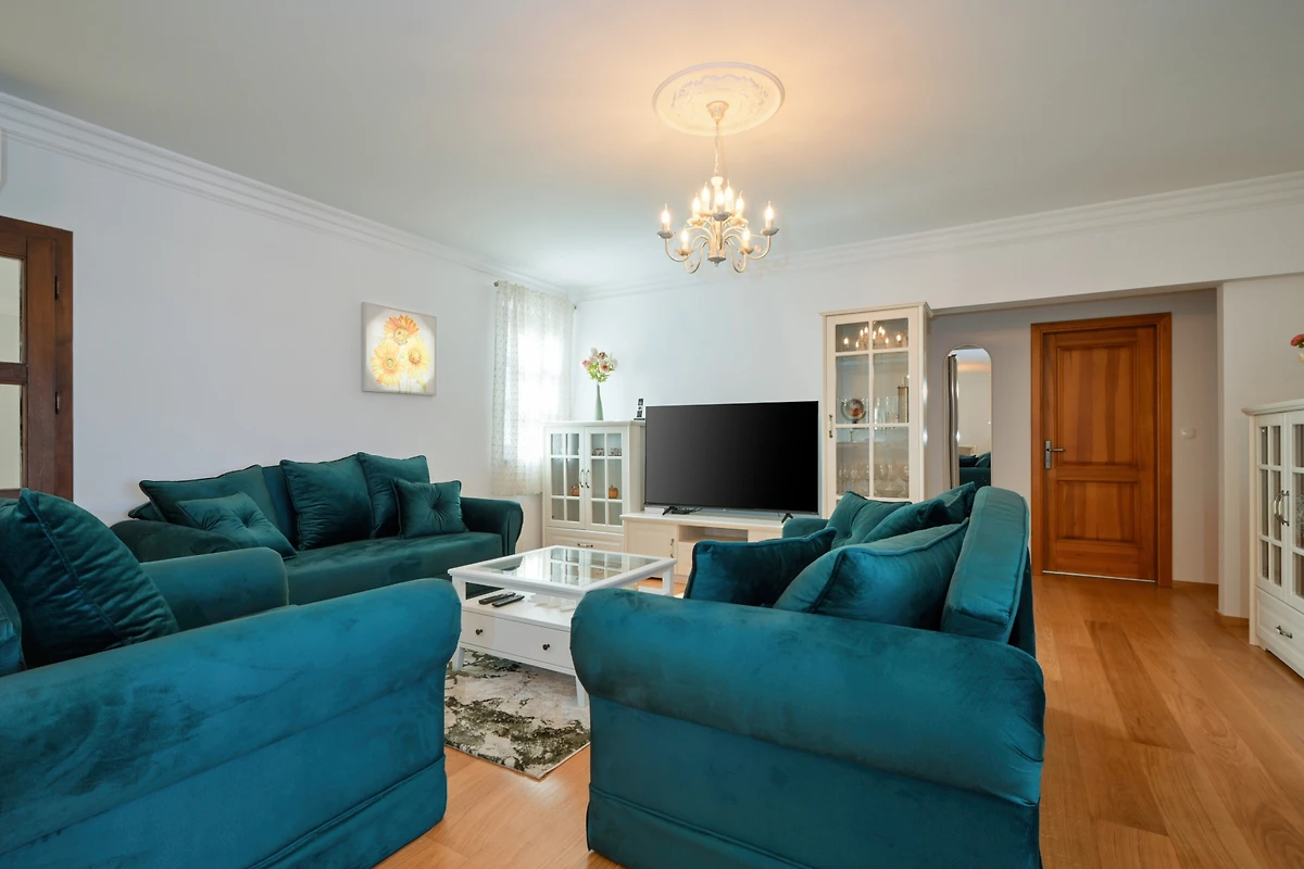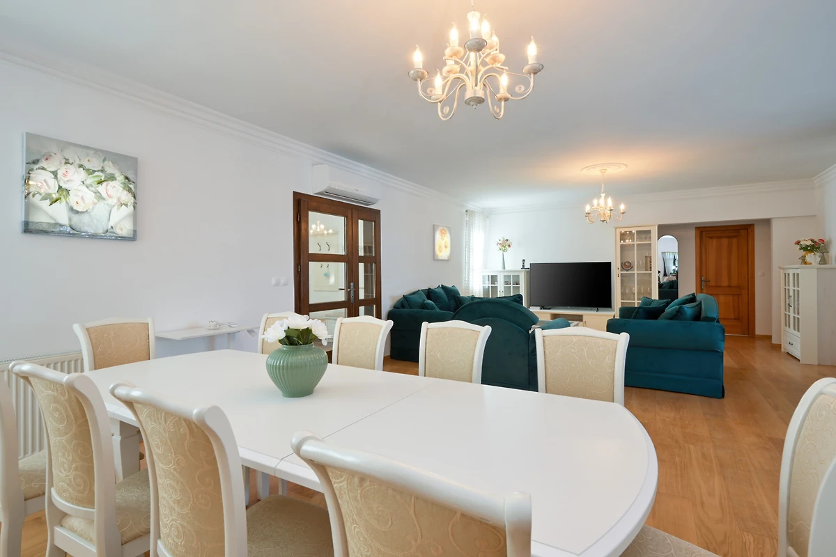 Entdecken Sie eine ruhige ländliche Unterkunft in den Dvori Perdedaj, eine geräumige Villa, die ideal für Familien und Gruppen ist, die Komfort und Entspannung suchen. Diese beeindruckende 180 Quadratmeter grosse Immobilie bietet Platz für bis zu 10 Gäste und verfügt über 4 gut ausgestattete Schlafzimmer mit einer Mischung aus Kingsize- und Einzelbetten.