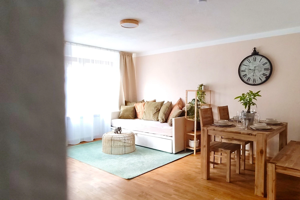 - Wohnzimmer: 2x 90cm hochwertige Matratze auf dem Schlafsofa (auf den Bildern)