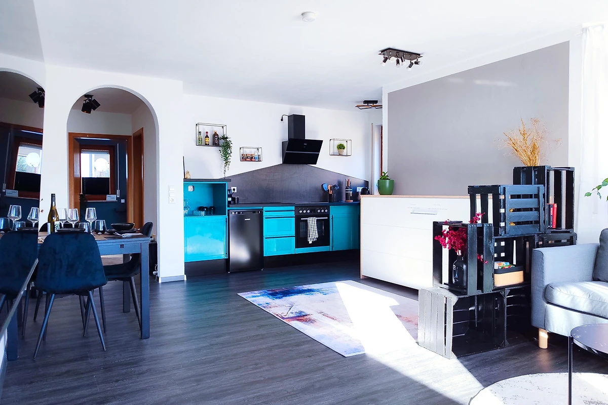 - Spülmaschine, Herd, Backofen & alle wichtigen Kochutensilien (Pfannen, Töpfe, Salatschüssel, Messer etc)