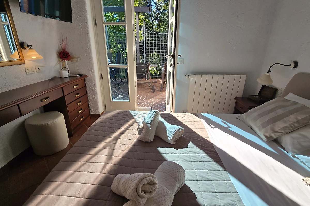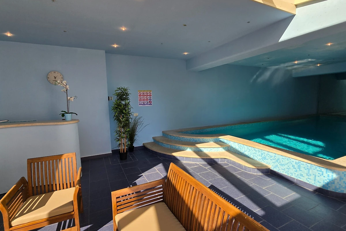 Komfort steht an erster Stelle mit Klimaanlage und einem effizienten Wärmepumpenheizsystem. Unterhaltung ist mit mehrsprachigem Satellitenfernsehen abgedeckt, und kostenloses WLAN hält alle verbunden. Zusätzliche Innenausstattungsmerkmale umfassen ein Bügeleisen und einen gemütlichen Kamin, perfekt für entspannte Abende.