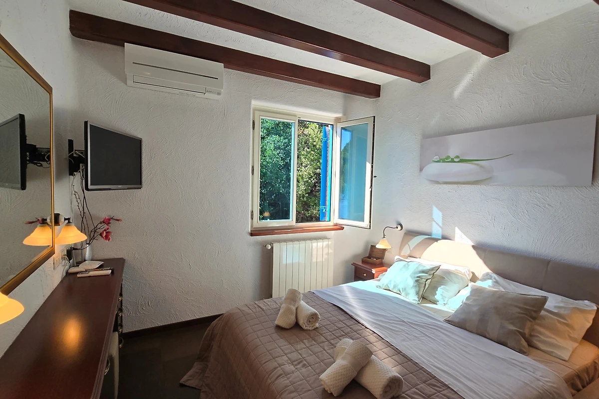 Nur 150 m von einem Sandstrand und 50 m von einem Felsstrand entfernt, bietet die Villa einen einfachen Strandzugang. In der Nähe befinden sich Einrichtungen wie ein Supermarkt 2 km entfernt, und die historische Stadt Opatija ist nur 14 km entfernt. Der Flughafen Pula liegt etwa 70 km entfernt.