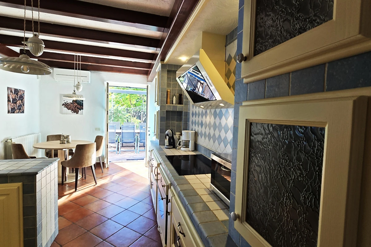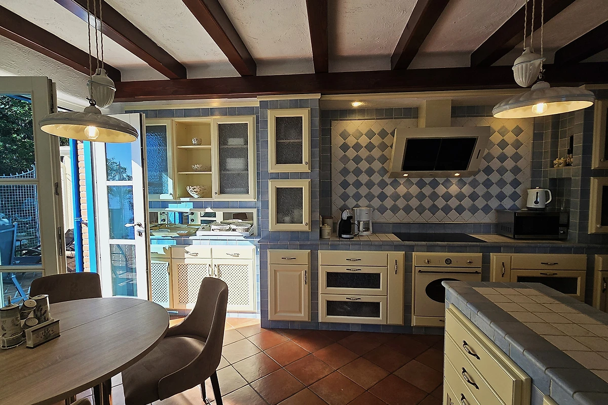 Das Herzstück des Hauses ist die moderne amerikanische Küche, vollständig ausgestattet mit hochwertigen Geräten, einschliesslich einer Glaskeramik-Kochplatte, Kühlschrank, Gefrierschrank, Backofen, Mikrowelle, Geschirrspüler, Kaffeemaschine und umfangreichem Küchengeschirr. Praktische Annehmlichkeiten wie Waschmaschine und Trockner erhöhen die Funktionalität des Hauses.