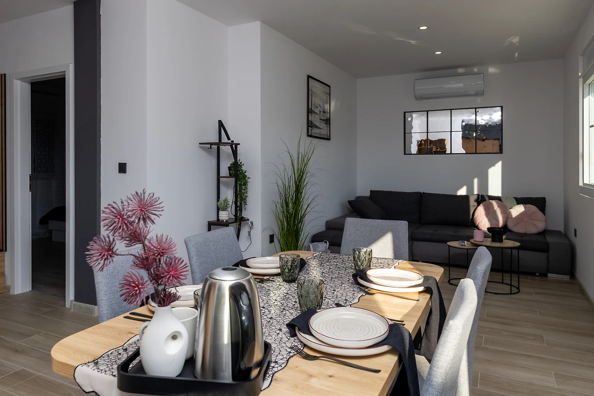 Villa Klara bietet einen entzückenden Rückzugsort, eingebettet in die ruhige ländliche Landschaft von Vrgorac, ideal für Familien und Paare, die einen friedlichen Urlaub suchen. Diese charmante 110 Quadratmeter grosse Immobilie bietet komfortable Unterkunft für bis zu 6 Gäste und verfügt über 2 geräumige Schlafzimmer mit Doppelbetten.