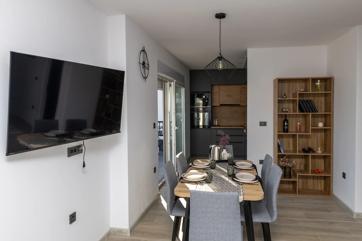 Die Villa verfügt über ein beeindruckendes Angebot an Annehmlichkeiten, die einen komfortablen und bequemen Aufenthalt gewährleisten. Die Küche ist vollständig ausgestattet mit modernen Geräten, einschliesslich einer Glaskeramik-Kochplatte, Kühlschrank, Gefrierschrank, Backofen, Mikrowelle, Geschirrspüler und Kaffeemaschine. Die Gäste werden die Bequemlichkeit des bereitgestellten Küchengeschirrs und der Teller zu schätzen wissen.