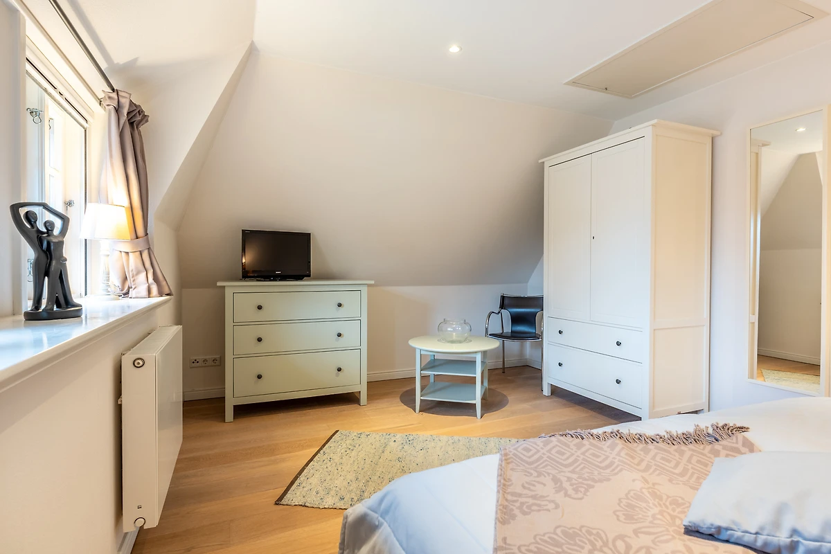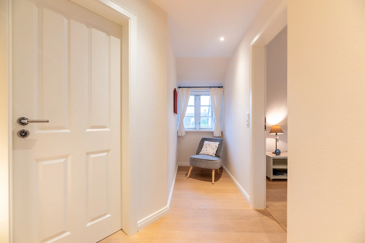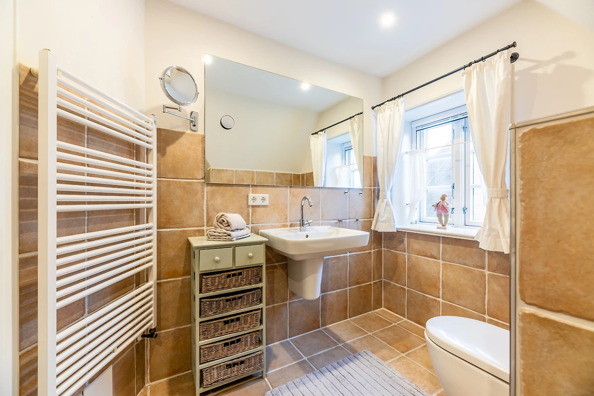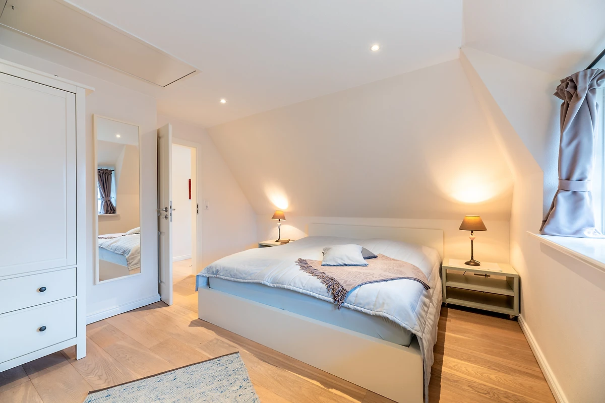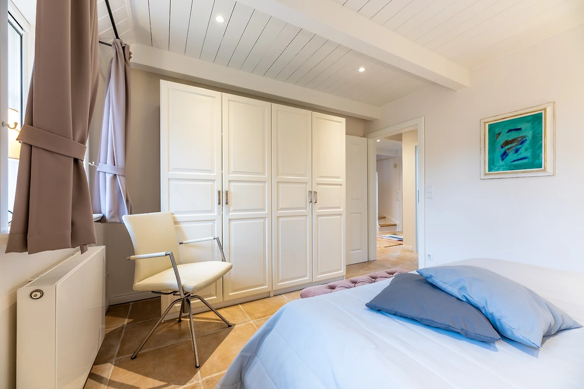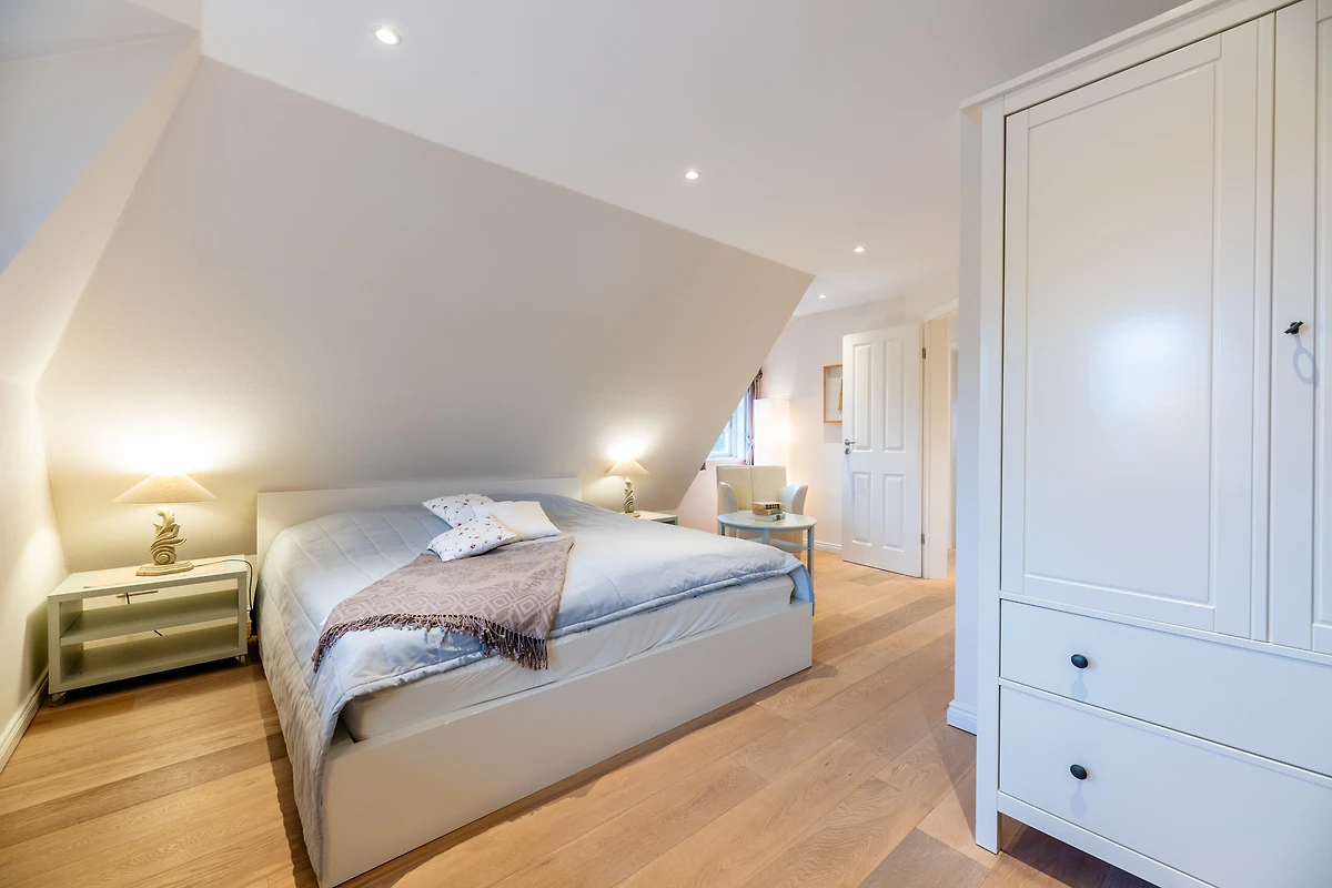 Das Schlafzimmer ist ein wahrer Rückzugsort mit bequemen Betten und hochwertiger Bettwäsche, ideal für eine erholsame Nacht. Das Badezimmer ist mit einer Waschmaschine und einem Wäschetrockner ausgestattet, was längere Aufenthalte besonders komfortabel macht. Weiterhin finden Sie hier einen Haartrockner und ein Bügeleisen, um stets bestens vorbereitet zu sein.