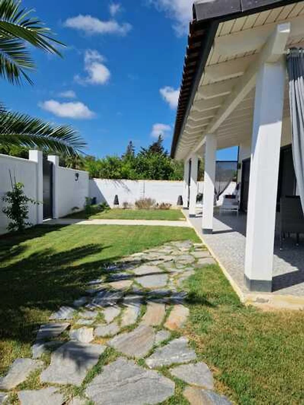 Das Haus steht separat eingezäunt mit eigenem Eingang auf unserem Grundstück von 1500m2 und bietet viel Privatsphäre