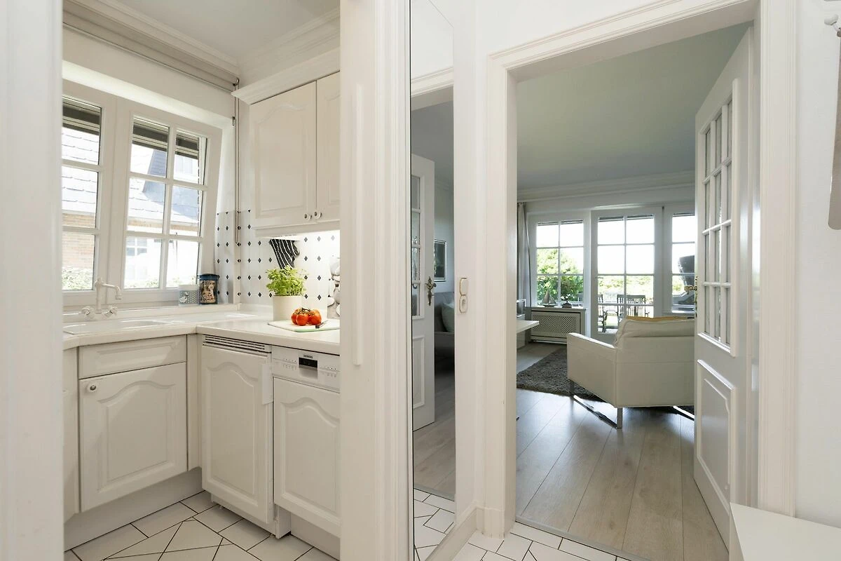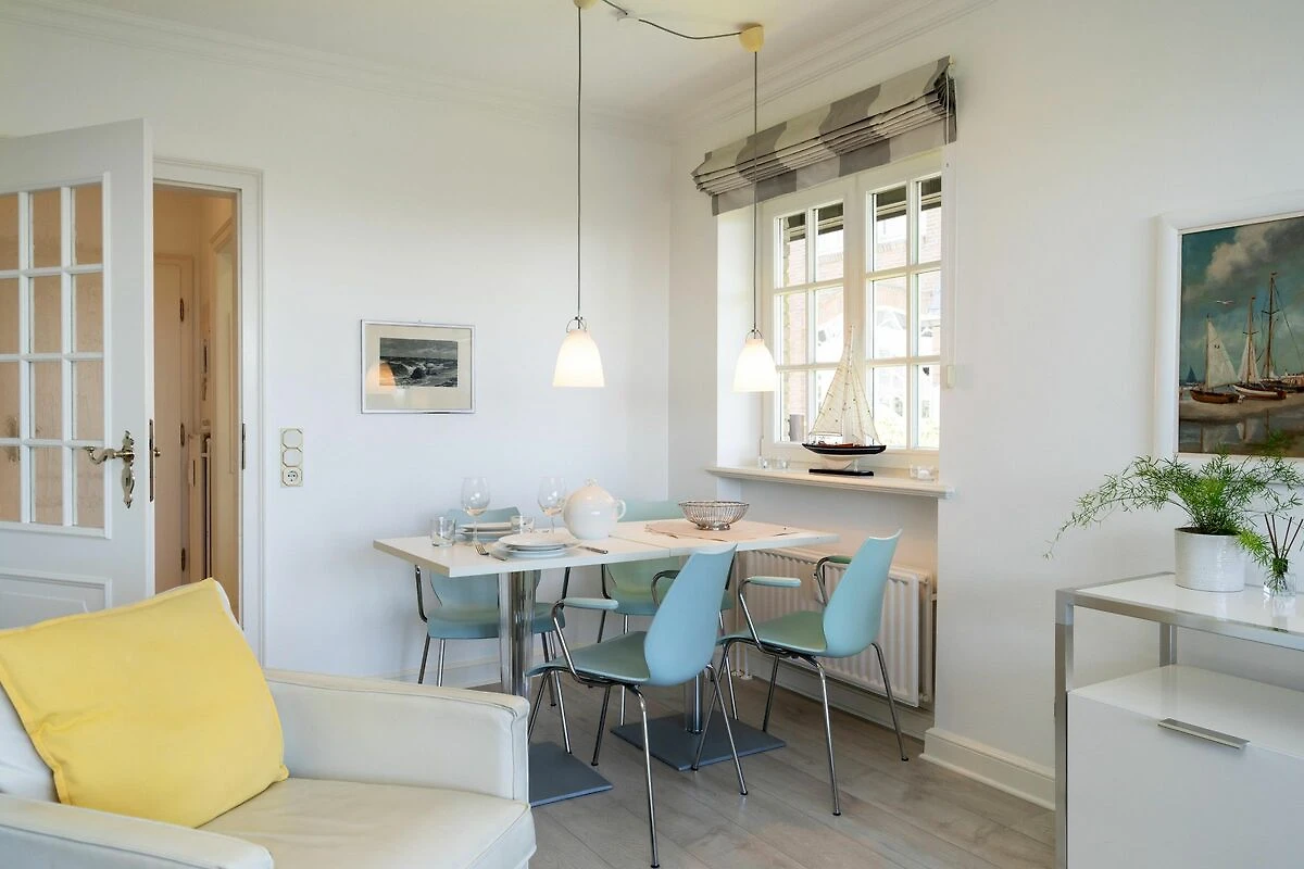 Das hochwertig eingerichtete App. "Sunny-Beach" für bis zu 2 Personen verläuft über zwei Ebenen und verspricht Ihnen absoluten Komfort in einem modernen Ambiente. Im Erdgeschoss erwartet Sie ein heller Wohnbereich mit direktem Zugang zur eigenen Terrasse samt Strandkorb und Gartenmöbeln (in der Saison) sowie Blick über die Dünen bis hin zu beiden Meeren. Die kleine Küche ist voll ausgestattet und dient hervorragend zum Kochen. Der Wohnbereich ist durch eine moderne Essecke ausgestattet. Das ausziehbare Sofa bietet eine zusätzliche Schlafmöglichkeit. Über eine Treppe gelangen Sie runter ins Souterrain. Dort erwartet Sie ein geräumiges Doppelschlafzimmer mit Boxspringbett. Der große Einbauschrank bietet Ihnen eine Menge Stauraum für Ihren Sylturlaub. Ebenfalls im Souterrain befindet sich das helle Badezimmer, welches mit einer Badewanne inkl. Duschfunktion ausgestattet ist. Das App. verfügt über WLAN. Kostenlose, öffentliche Parkmöglichkeiten befinden sich direkt an der Kurhausstraße. Einen gemeinschaftlichen Waschraum inkl. Waschmaschine und Wäschetrockner (gebührenpflichtig) finden Sie im Keller des Hauses. Haustiere sind nicht gestattet.
