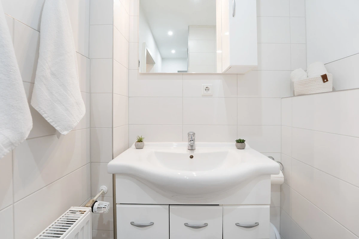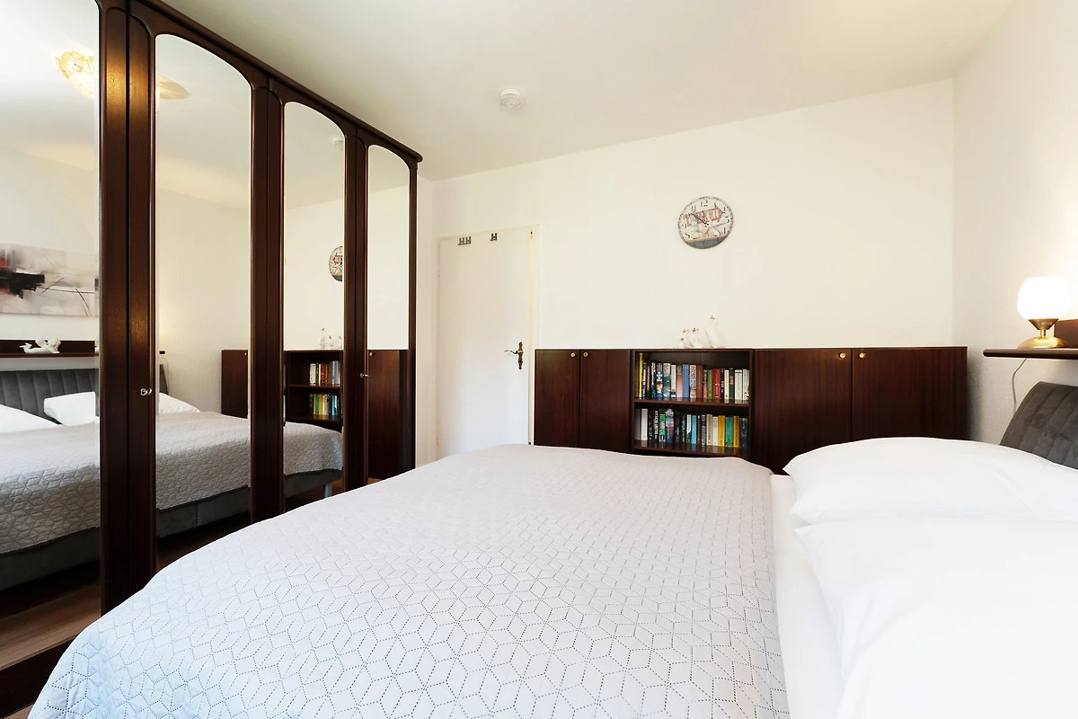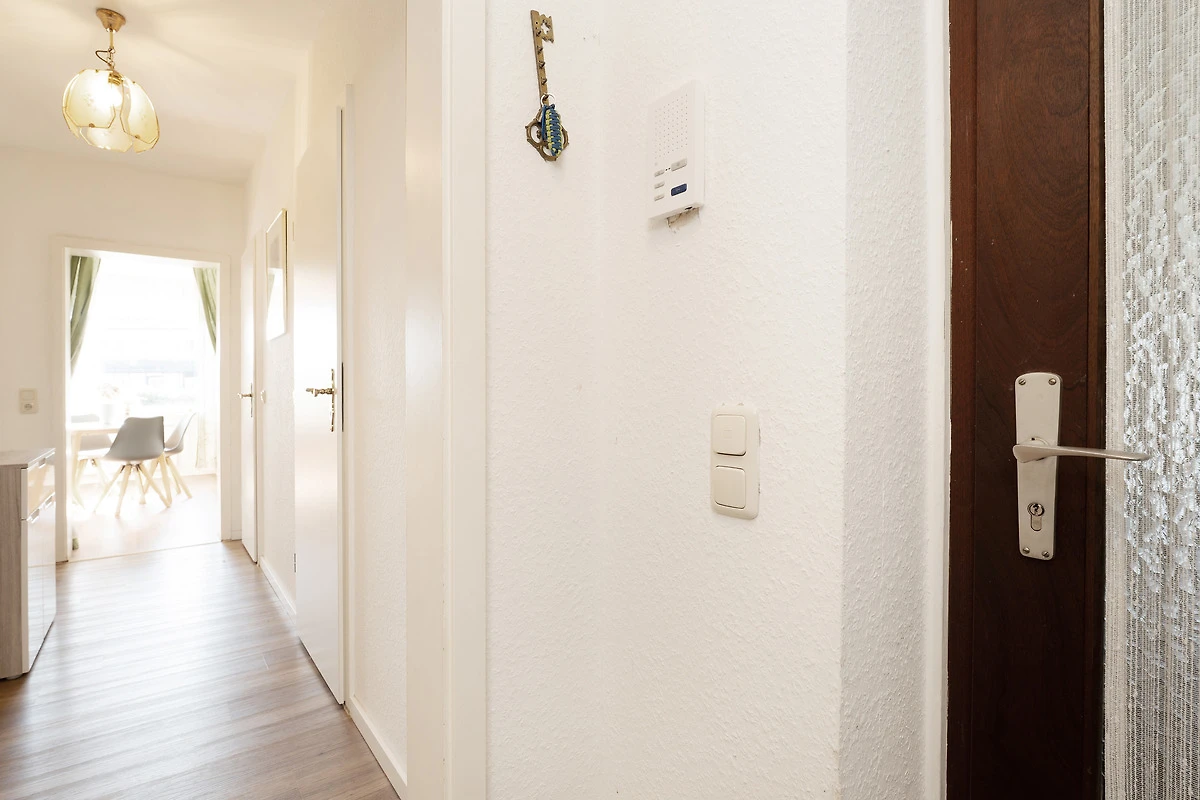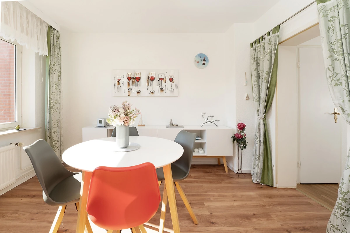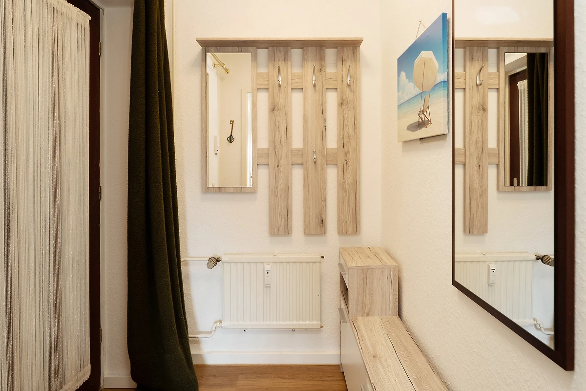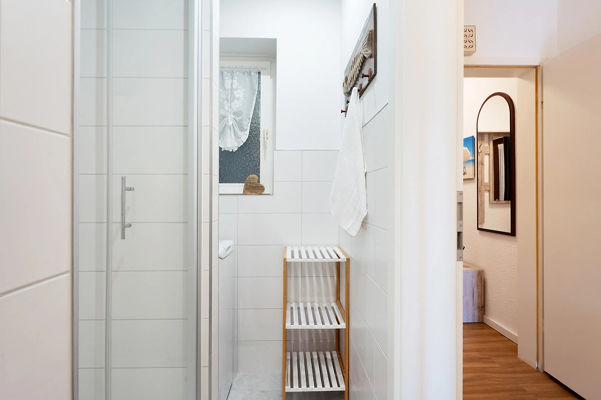 Die modern ausgestattete Ferienwohnung liegt im Hochparterre eines gepflegten Hauses in zentraler Lage von Grömitz. Der Wohnbereich bietet eine gemütliche Sitzecke, einen Flachbild-TV, CD-Player und ein Radio. Vom Wohnzimmer aus gelangen Sie direkt auf den Balkon, der mit Gartenmöbeln ausgestattet ist. Die separate Küche ist mit einer Kaffeemaschine, Mikrowelle, Wasserkocher, Toaster, Spülmaschine und einem 4-Platten-Induktionsherd ausgestattet. Das Schlafzimmer verfügt über ein bequemes Doppelbett, ein weiteres Wohn-/Schlafzimmer ist mit einer Schlafcouch ausgestattet und bietet zusätzlichen Raum zur Erholung. Das Badezimmer verfügt über eine Dusche, sowie über ein Waschbecken und ein WC. Ein Kinderhochstuhl sowie ein Kinderreisebett stehen zur Verfügung.