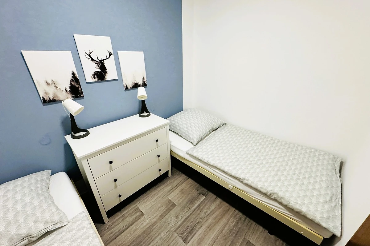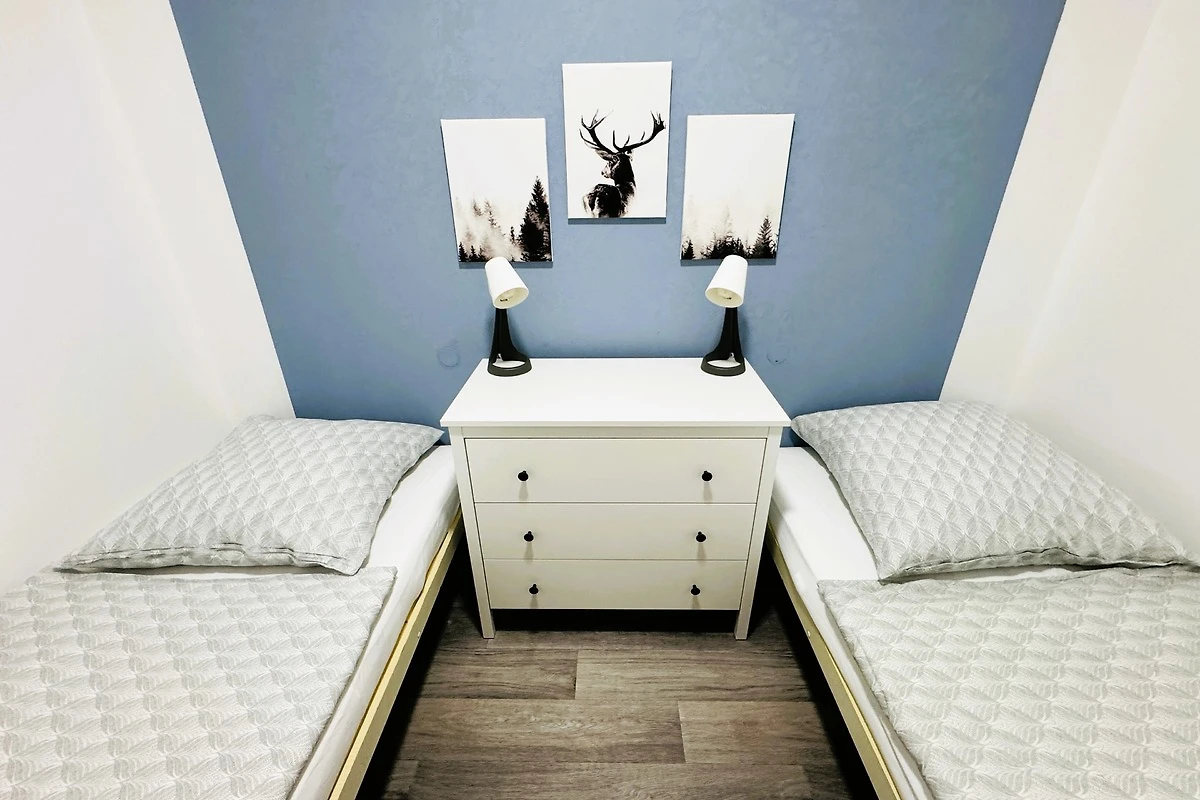 • 2 separate Schlafzimmer (1 Doppelbett, 2 Einzelbetten, 1 Extra-Gäste-Klappbett)
