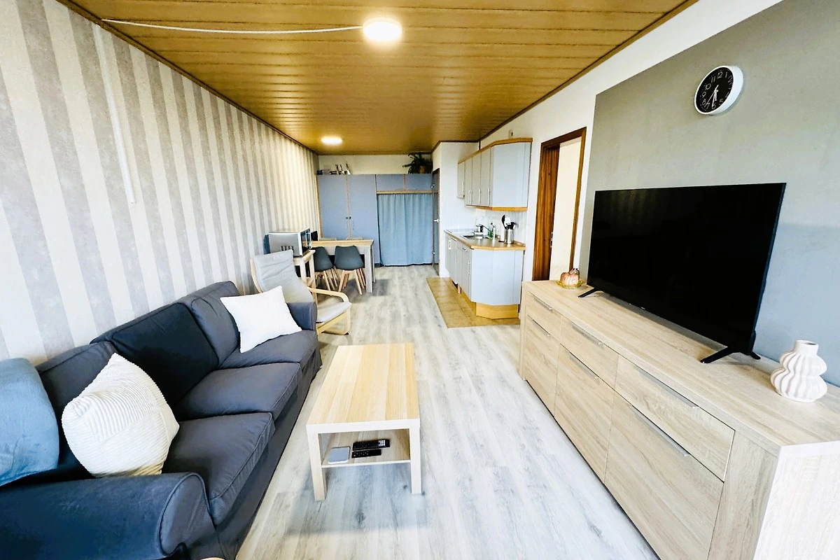 • Wohnbereich mit gemütlichem Sofa, grossem Smart-TV & Essbereich