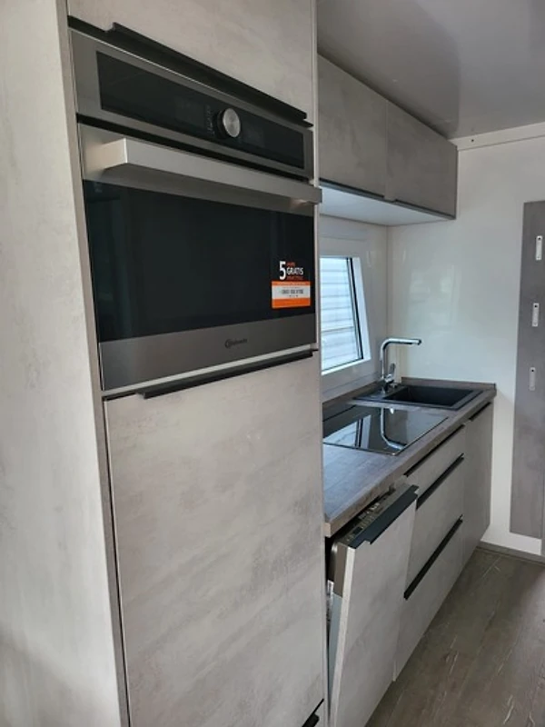 Die Küchenzeile schliesst sich am Wohnbereich an und ist mit Kühlschrank und Gefrierfach, 4 Platten Induktionskochfeld, Geschirrspüler, Wasserkocher, Kombimikrowelle, Toaster, Nespresso Maschine, sowie einen French Press Kaffeebereiter voll ausgestattet.