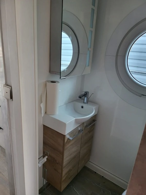 Ein Schlafraum mit einem Boxspringbett 160 x 200 und einem weiteren Schlafraum mit Etagenbett 90 x 200 und eigenem Bullauge für jede Koje, sorgen für erholsame Nächte. Zudem kann die Eckcouch als Schlafmöglichkeit 120 x 190 genutzt werden.