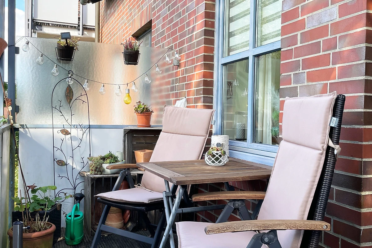 Vom Wohnzimmer aus erreichen Sie den kleinen Balkon mit Blick auf die Schwienau. Geniessen Sie hier ein paar Sonnenstunden im Grünen.