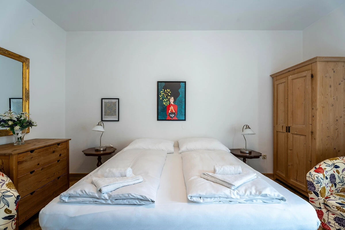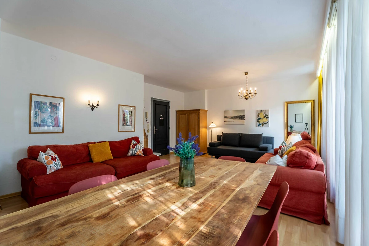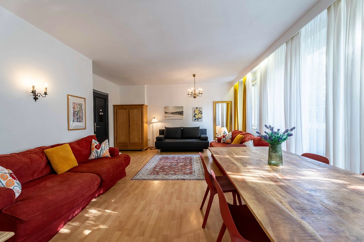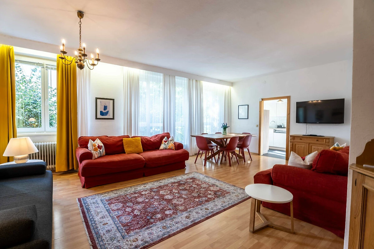 Komfortable Ferienwohnung. Im Zentrum, Balkon. 1 Schlafzimmer. 1 Badezimmer. 55m². 1 - 5 Personen. Geniessen Sie Ihren Urlaub in Zell am See in unserem Living Eden - TOP 2 und buchen Sie zum Bestpreis direkt beim Eigentümer. Unser Deluxe Apartment lädt mit je einem Schlaf- und Wohnzimmer für gemütliche Tage nach Zell am See ein. Auf 55m² finden bis zu 5 Personen Platz. Das Beste: Zentrale Lage direkt im Stadtkern, sowie Parkplätze und ein riesiges Wohnzimmer mit Blick auf die Innenstadt von Zell am See. Zu Fuss erreichbar sind: die City Express Gondelbahn (400m), der See (200m), ein Supermarkt (100m), der Bahnhof (150m). Den Golfplatz (4km) und den Flughafen Salzburg (75km) erreichen sie bequem mit dem Auto oder den öffentlichen Verkehrsmitteln. Die Unterkunft verfügt weiter über einen Aufzug, ein Bügeleisen/-brett, einen Internetanschluss (WLAN), einen Föhn, eine Zentralheizung sowie einen Ventilator und einen Fernseher. Die Küche mit elektrischem Kochfeld ist ebenfalls voll ausgestattet: Dort findet sich ein Kühlschrank, ein Backofen, eine Spülmaschine, Geschirr/Besteck, Kochutensilien, eine Kaffeemaschine, ein Toaster und ein Wasserkocher.
