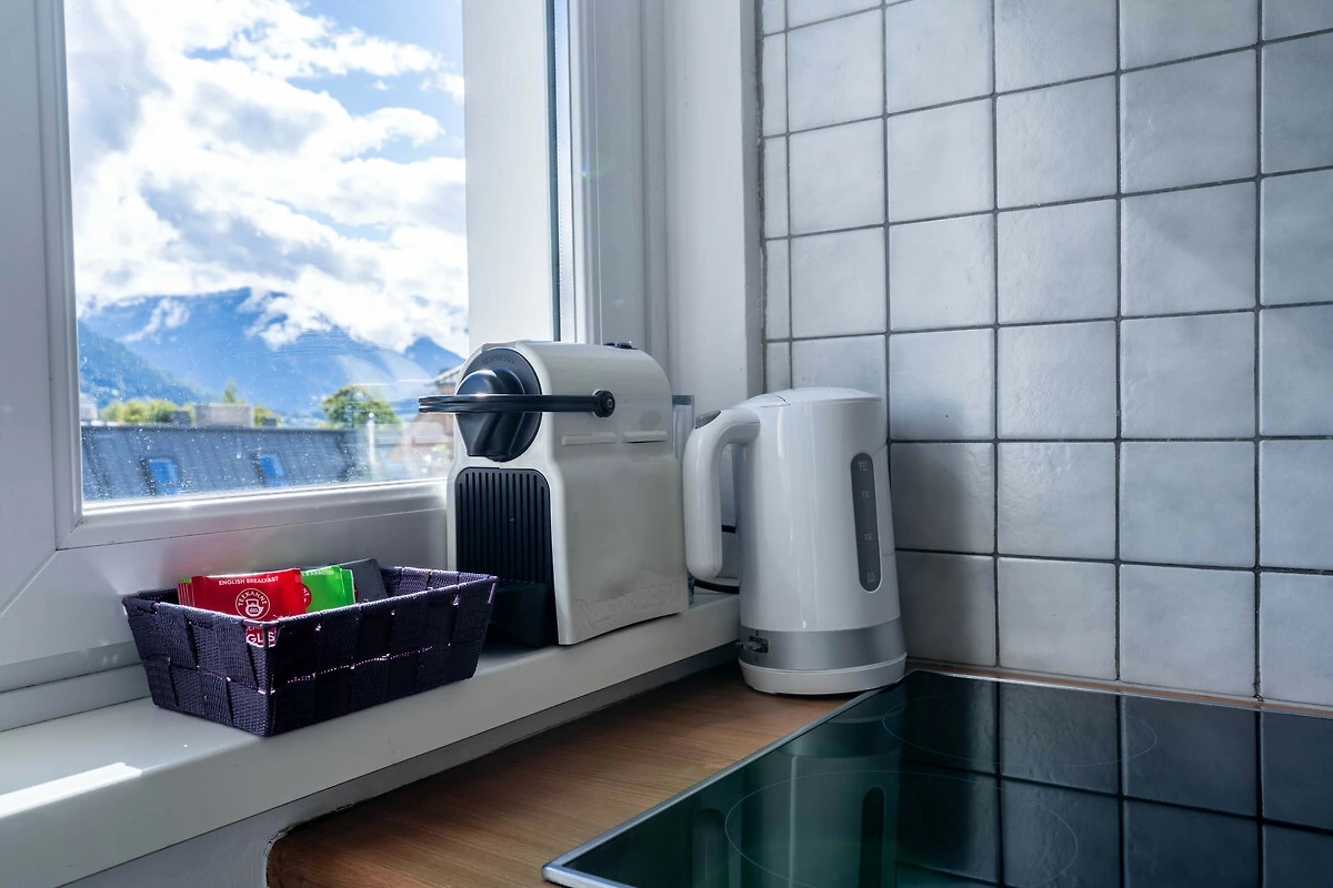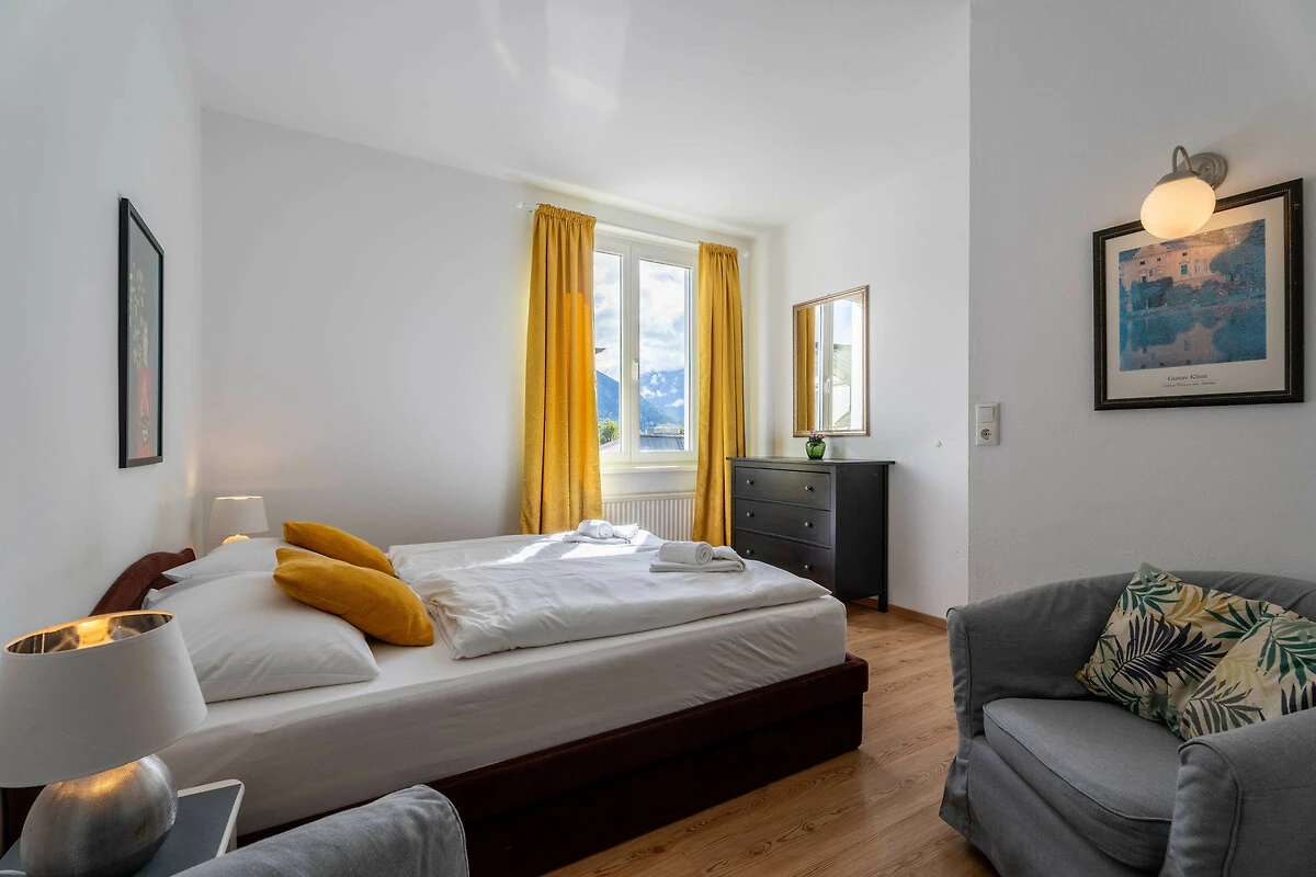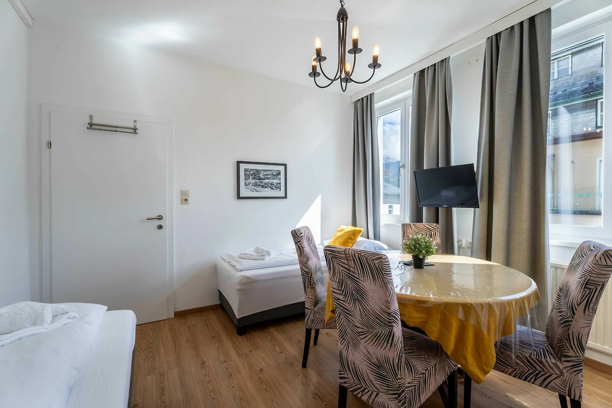 Komfortable Ferienwohnung. Im Zentrum, Seeblick. 1 Schlafzimmer. 1 Badezimmer. 40m². 1 - 4 Personen. Verbringen Sie unvergessliche Tage in Zell am See in unserem Living Eden - TOP 12 und reservieren Sie direkt zum Bestpreis beim Eigentümer.Unser Superior Apartment lädt mit je einem Schlaf- und Wohnzimmer für gemütliche Tage nach Zell am See ein. Auf 40m² finden bis zu 4 Personen Platz. Das Beste: Zentrale Lage direkt im Stadtkern. Zu Fuss erreichbar sind: die City Express Gondelbahn (400m), der See (200m), ein Supermarkt (150m), der Bahnhof (150m). Den Golfplatz (4km) und den Flughafen Salzburg (75km) erreichen sie bequem mit dem Auto oder den öffentlichen Verkehrsmitteln. Die Unterkunft verfügt weiter über einen Aufzug, ein Bügeleisen/-brett, Internet (WLAN), einen Föhn, eine Zentralheizung sowie einen Fernseher. Die Küche mit elektrischem Kochfeld ist ebenfalls voll ausgestattet: Dort findet sich ein Kühlschrank, ein Backofen, Geschirr/Besteck, Kochutensilien, eine Kaffeemaschine, ein Toaster und ein Wasserkocher.