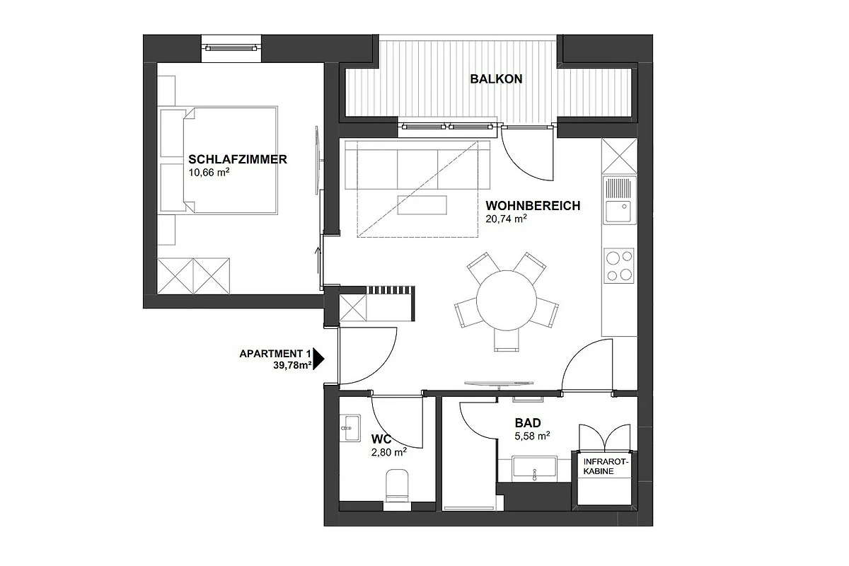 Deluxe Ferienwohnung. Bergblick. 1 Schlafzimmer. 1 Badezimmer. 40m². 1 - 4 Personen. Verbringen Sie unvergessliche Tage in Zell am See in unserem Tevini Alpine Apartments - Schmittenblick und reservieren Sie direkt zum Bestpreis beim Eigentümer.In Tevini´s Bergblicken ist der Name Programm. Im Schmittenblick geniessen wir einen atemberaubenden Ausblick auf die umliegende Bergwelt von Zell am See-Kaprun. Der Fuss der Schmittenhöhe liegt buchstäblich vor der Türe. Ausgestattet ist das Apartment mit allem, was ein entspannter Urlaub braucht: Auf 40 m² finden sich ein Schlafzimmer mit Doppelbett und ein Wohnraum mit einer Doppelschlafcouch für insgesamt 4 Personen. Ein modernes Badezimmer und die Toilette sind separat benutzbar. Selbstverständlich nutzen unsere Gäste kostenfreies Internet und einen Parkplatz. Weiters haben wir einen Ski- und Radkeller. Der Schmittenblick verfügt über einen grossen Balkon, sowie eine Zentralheizung und einen Smart TV. Die Wohnküche mit elektrischem Kochfeld ist ebenfalls voll ausgestattet: Kühl- und Gefrierschrank, Mikrowelle, Backofen, Spülmaschine, Geschirr/Besteck, Kochutensilien, eine Kaffeemaschine sowie Toaster und ein Wasserkocher gehört zu unserer Standardausstattung. Zu Fuss erreichbar sind: die Areit Gondelbahn (300m), der See (600m), ein Supermarkt (50m), der Bahnhof und der Stadtkern (jedoch 2,5km). Den Golfplatz (1km) und den Flughafen Salzburg (75km) erreichen sie bequem mit dem Auto oder den öffentlichen Verkehrsmitteln.