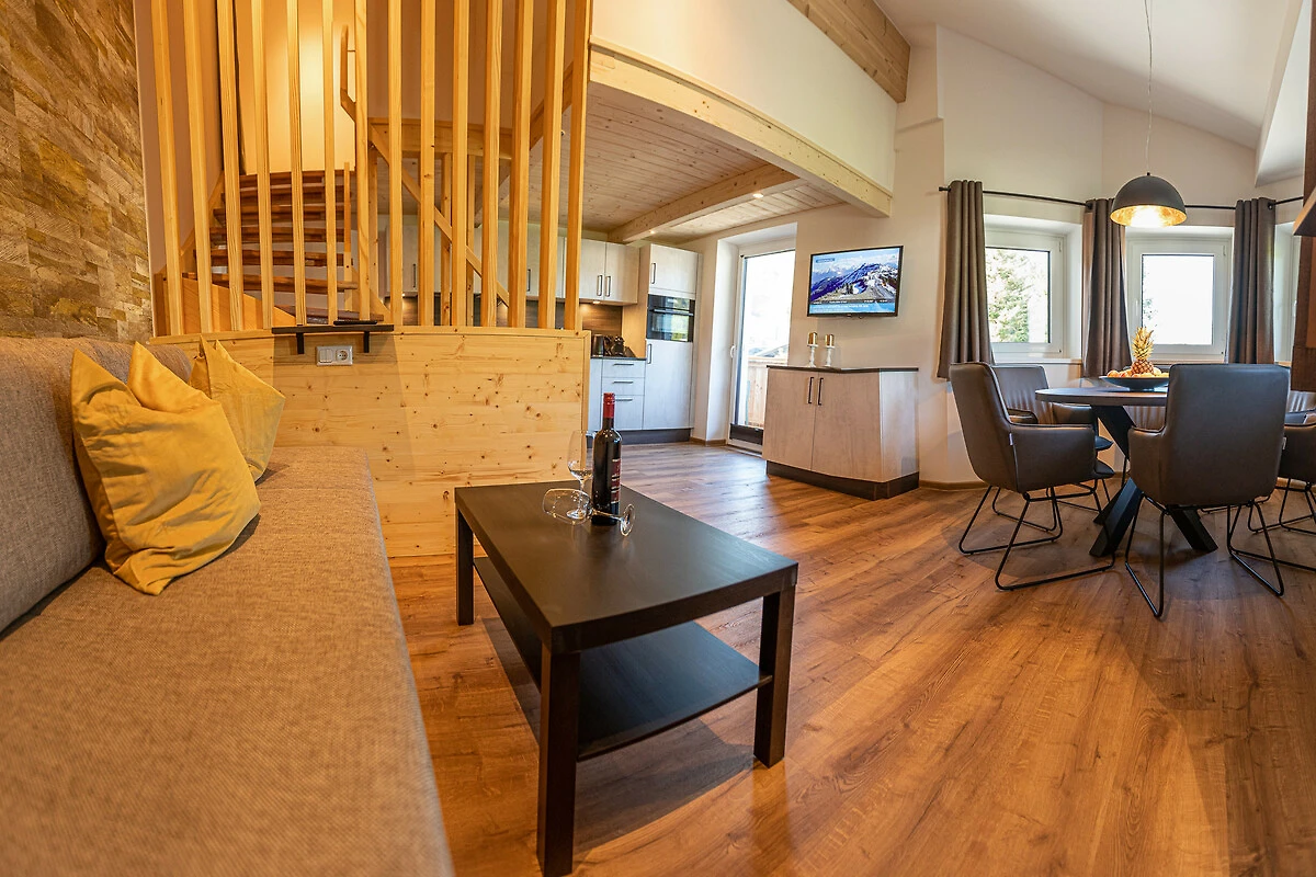 Superior Ferienwohnung. Bergblick, Balkon. 2 Schlafzimmer. 1 Badezimmer. 60m². 1 - 6 Personen. Erleben Sie Ihren Traumurlaub in Zell am See in unserem Tevini Boutique Suites - Apartment Air und profitieren Sie vom Bestpreis direkt beim Eigentümer. NEU!! Tevini Boutique Suites begrüssen Gäste ab Mai 2021. Modernste Ausstattung gepaart mit alpinem Flair macht die Ferienwohnung „Air“ zu einer Wohlfühloase die ihresgleichen sucht. Am Fusse der Schmittenhöhe, direkt gegenüber dem AreitXpress sind Tevini’s Boutique Suites der ideale Ausgangspunkt sowohl für den Sommer- als auch Winterurlaub. Ausgestattet ist das Apartment mit allem, was ein entspannter Urlaub braucht: Auf 60m² befinden sich zwei Schlafzimmer mit jeweils einem Doppelbett und ein Wohnraum mit einer Doppelschlafcouch für insgesamt 6 Personen. Ein modernes Badezimmer mit Dusche ist selbstverständlich. Natürlich nutzen unsere Gäste kostenfreies Internet und einen Parkplatz. Weiters haben wir einen Ski- und Radkeller. Das Apartment „Air“ verfügt über einen Balkon, sowie eine Zentralheizung und einen Smart TV.Die Wohnküche mit elektrischem Kochfeld ist ebenfalls voll ausgestattet: Kühl- und Gefrierschrank, Mikrowelle, Backofen, Spülmaschine, Geschirr/Besteck, Kochutensilien, eine Kaffeemaschine sowie Toaster und ein Wasserkocher gehört zu unserer Standardausstattung.Zu Fuss erreichbar sind: die Areit Gondelbahn (300m), der See (600m), ein Supermarkt (50m), der Bahnhof und der Stadtkern (jedoch 2,5km). Den Golfplatz (1km) und den Flughafen Salzburg (75km) erreichen sie bequem mit dem Auto oder den öffentlichen Verkehrsmitteln.