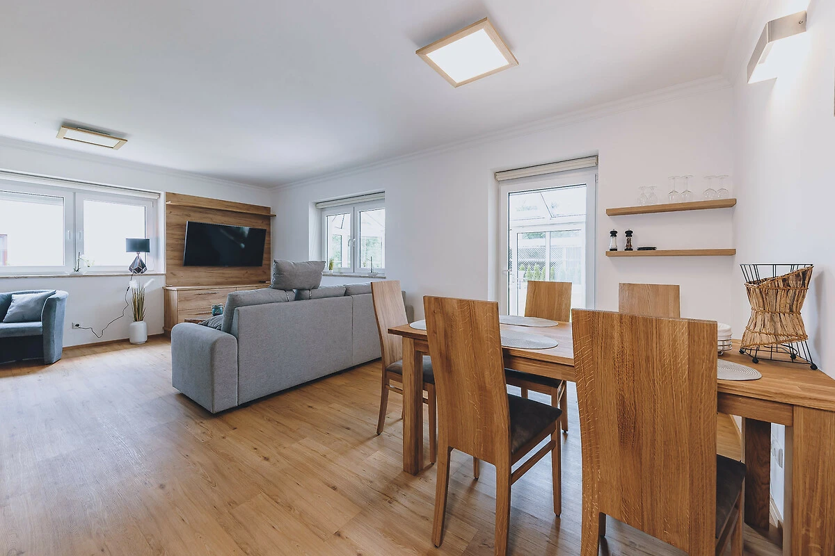 Superior Ferienwohnung. Garten, Wellness. 2 Schlafzimmer. 1 Badezimmer. 90m². 1 - 6 Personen. Verbringen Sie unvergessliche Tage in Zell am See in unserem Spa Chalet - Garden Lodge und reservieren Sie direkt zum Bestpreis beim Eigentümer.Wohlfühlen auf 100m² aufgeteilt in 2 separate Schlafzimmer, 1 Wohnzimmer mit offener Küche, 1 Badezimmer mit Badewanne & Terrasse mit Zugang zum Garten. Frisch renoviert und seit Juni 2022 erstmalig zur touristischen Nutzung bietet unser Spa Chalet mit seinen 2 Lodges (Garden Lodge / Penthouse Lodge) Platz für 4 bis 6 Personen pro Lodge. Die offene Küche bietet alles was unsere Gäste zum Zaubern ihrer Gerichte benötigen: Kühl/Gefrierschrank, Backofen, Spülmaschine, Geschirr/Besteck, Kochutensilien, Kaffeemaschine (Tabs), Toaster und einen Wasserkocher. Zentralheizung und klimatisierter Boden sorgen immer für die richtige Temperatur. Bügeleisen, Waschmaschine und Trockner sowie ein Parkplatz vor dem Haus komplettieren das Angebot.Unser Spa Chalet befindet sich in Schüttdorf (Ortsteil von Zell am See). Restaurants & Einkaufsmöglichkeiten befinden sich in Fussdistanz. Der nächstgelegene Skilift ist der AreitXpress – ca. 1 Kilometer von der Unterkunft entfernt. Zum Zeller See sind es ca 1,5 Kilometern und im Sommer ist der Golfplatz Zell am See-Kaprun lediglich 3,0 Kilometer entfernt.